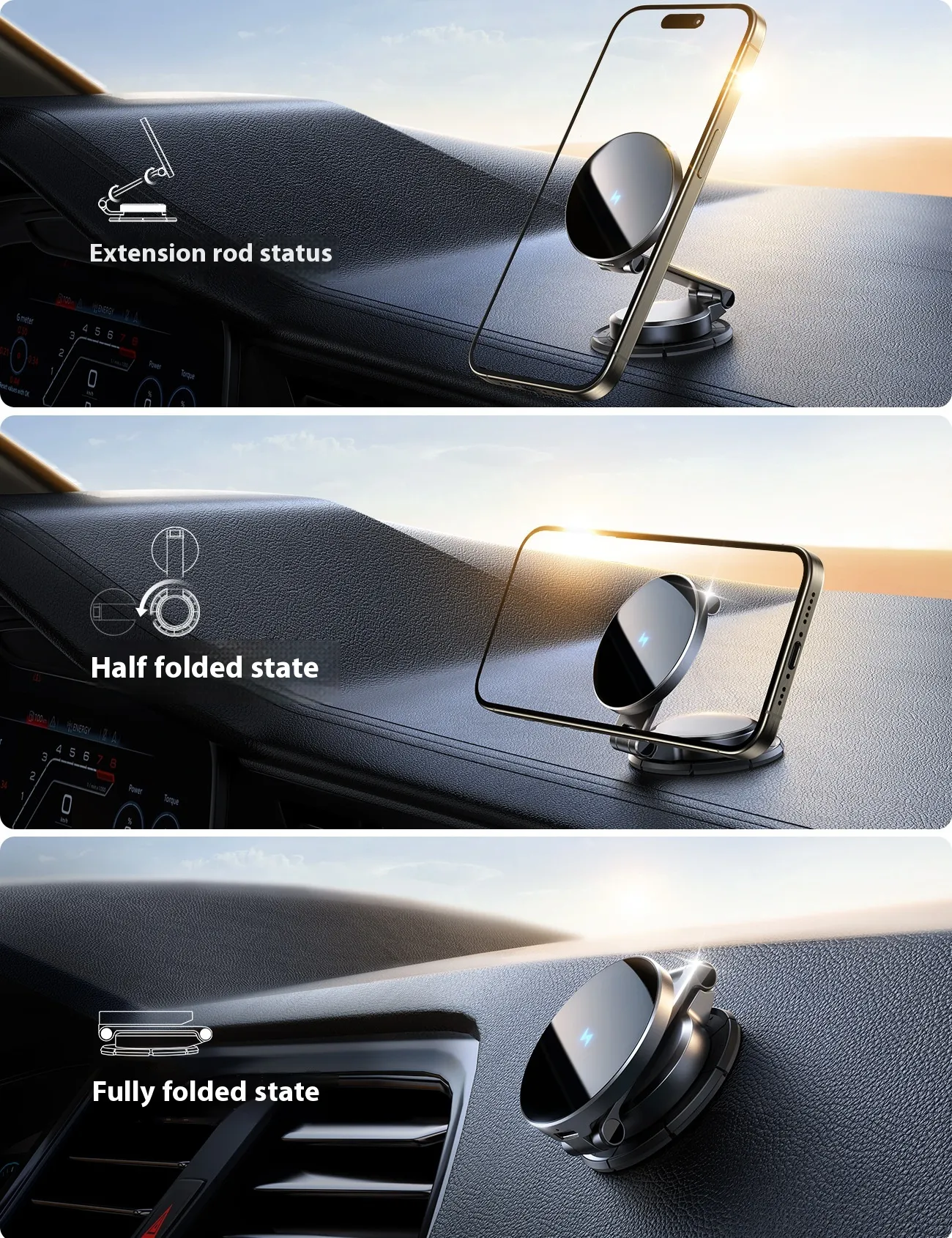 Its strong grip design ensures your device stays secure on the dashboard or air vent, while automatic alignment with wireless charging allows effortless power delivery. The adjustable viewing angles provide an optimal line of sight for navigation, calls, or media use, ensuring both convenience and safety.