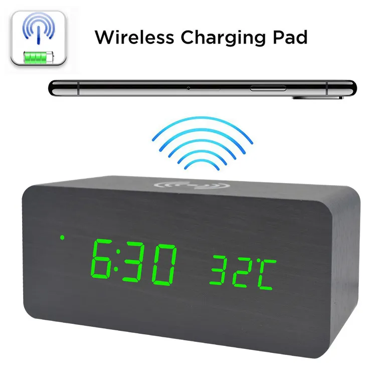 Wireless Charging Pad: Charge your Qi-enabled devices such as smartphones, earbuds, and smartwatches directly on the clock