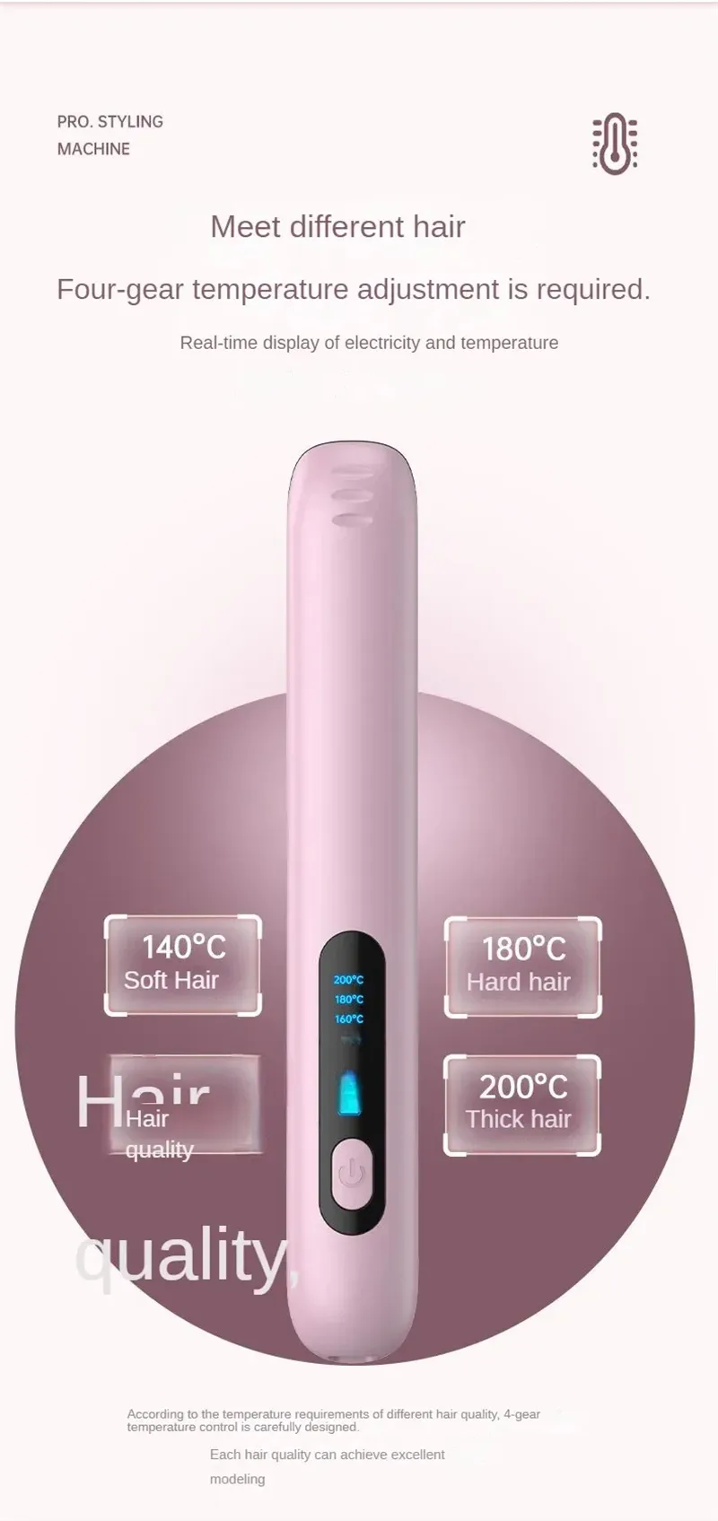 Customize your styling experience with 4 different heat settings, ranging from 140°C to 200°C. Whether you have fine, medium, or thick hair, this adjustable heat feature allows you to choose the optimal temperature for your hair type and desired style. The variety of heat levels ensures that you can achieve the perfect look without overheating or damaging your hair.