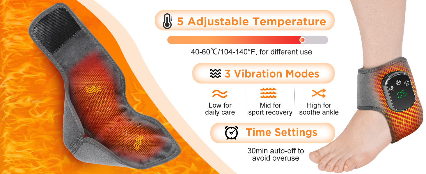 - Ankle Vibrating Massager: Portable foot heating pad provides precise vibrations to deliver comfort. With 3 massage vibration intensity modes, our ankle heating pad can accommodate varying massage intensity needs, which provides great relaxation for your ankle