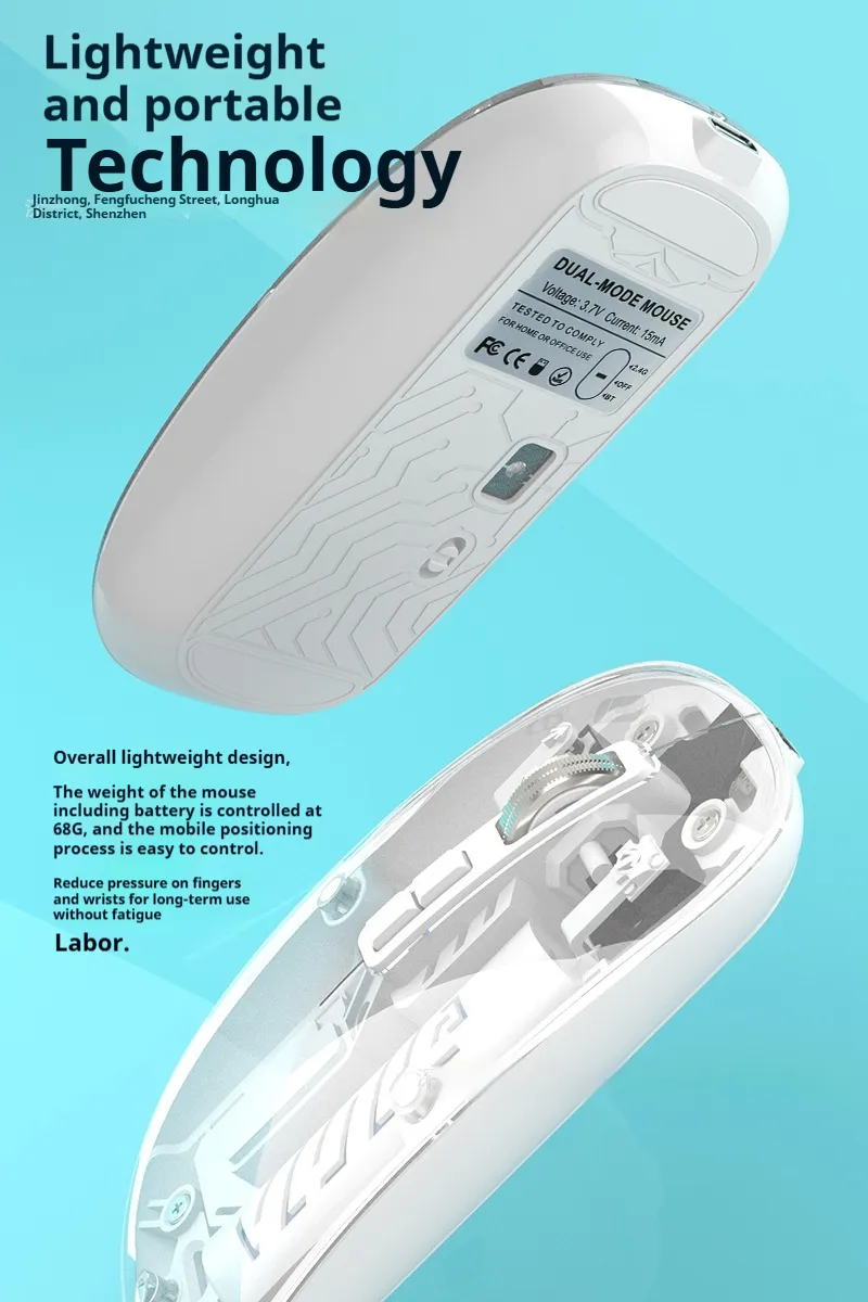 The transparent design of the mouse is one of its standout features. It provides a modern, futuristic aesthetic that makes the mouse not just a functional tool but also a conversation piece for your desk. The sleek, see-through casing lets you admire the inner workings and technology of the mouse, giving it a unique and stylish look that complements any workspace or gaming setup.