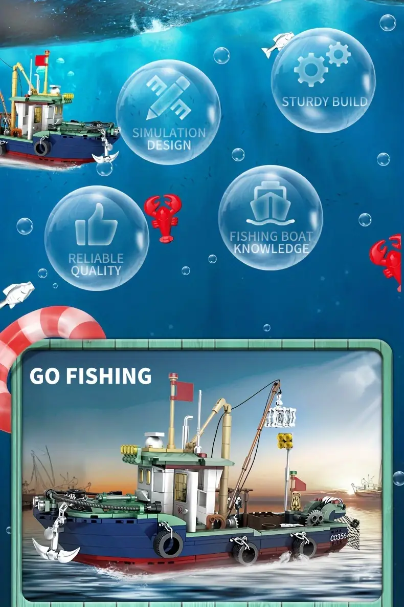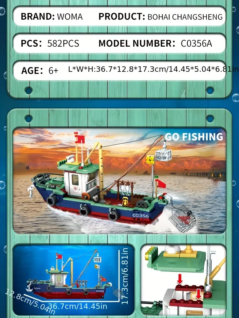 WOMA Go Fishing Boat Building Blocks Set