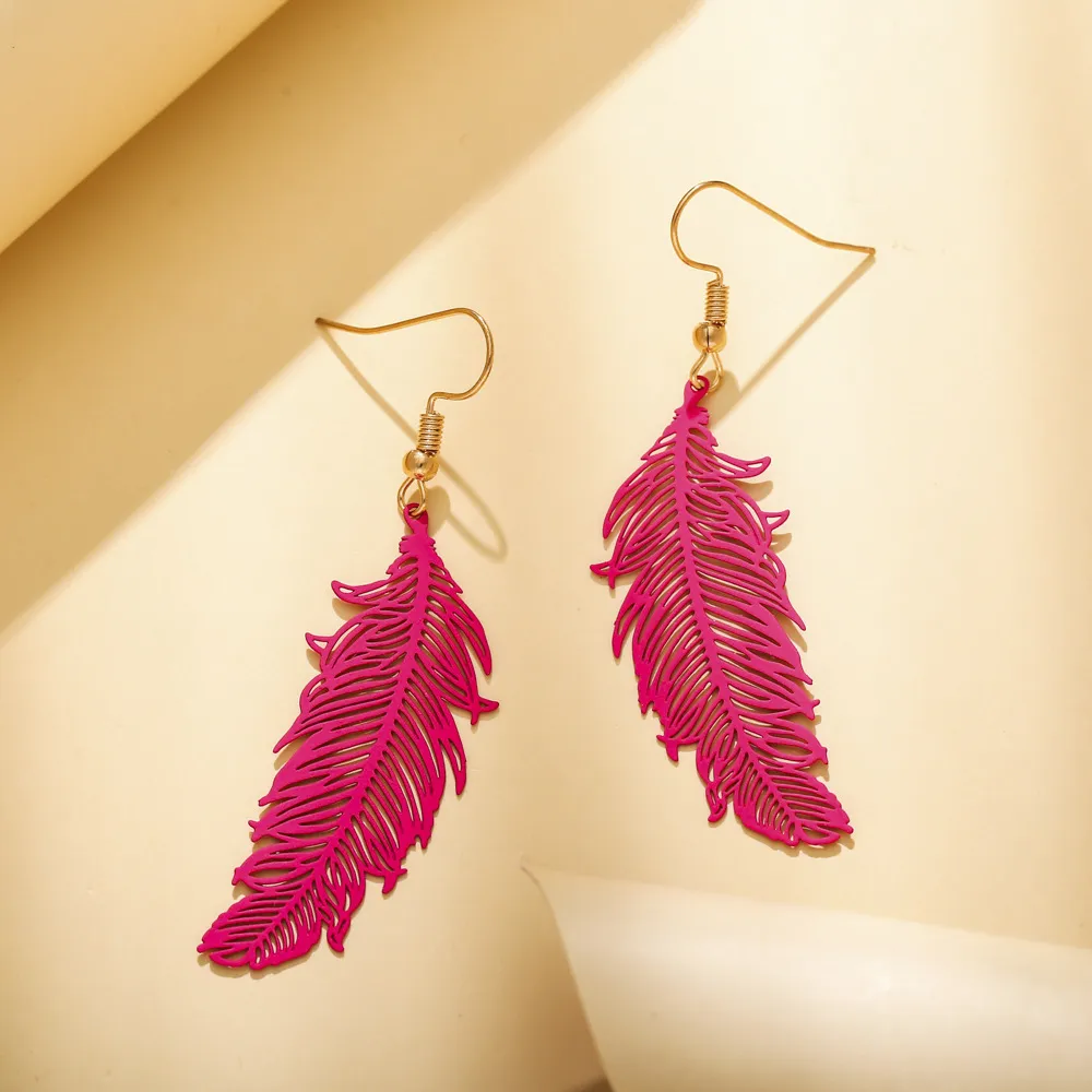 The Airy and Versatile Hollow Feather Earrings feature a beautifully crafted feather design with a hollow, airy structure that gives them a sense of lightness and movement. The hollow design adds depth to the feather, allowing light to pass through and creating a soft, ethereal effect that mimics the natural beauty of real feathers. This design not only offers a delicate appearance but also a comfortable, lightweight feel, making these earrings perfect for all-day wear.