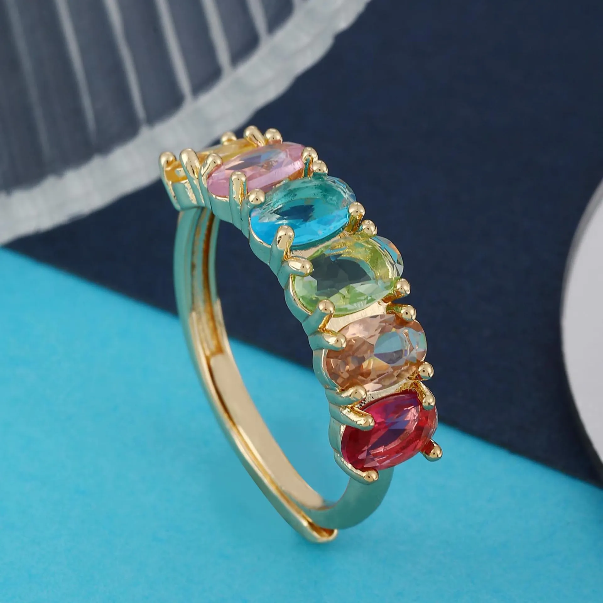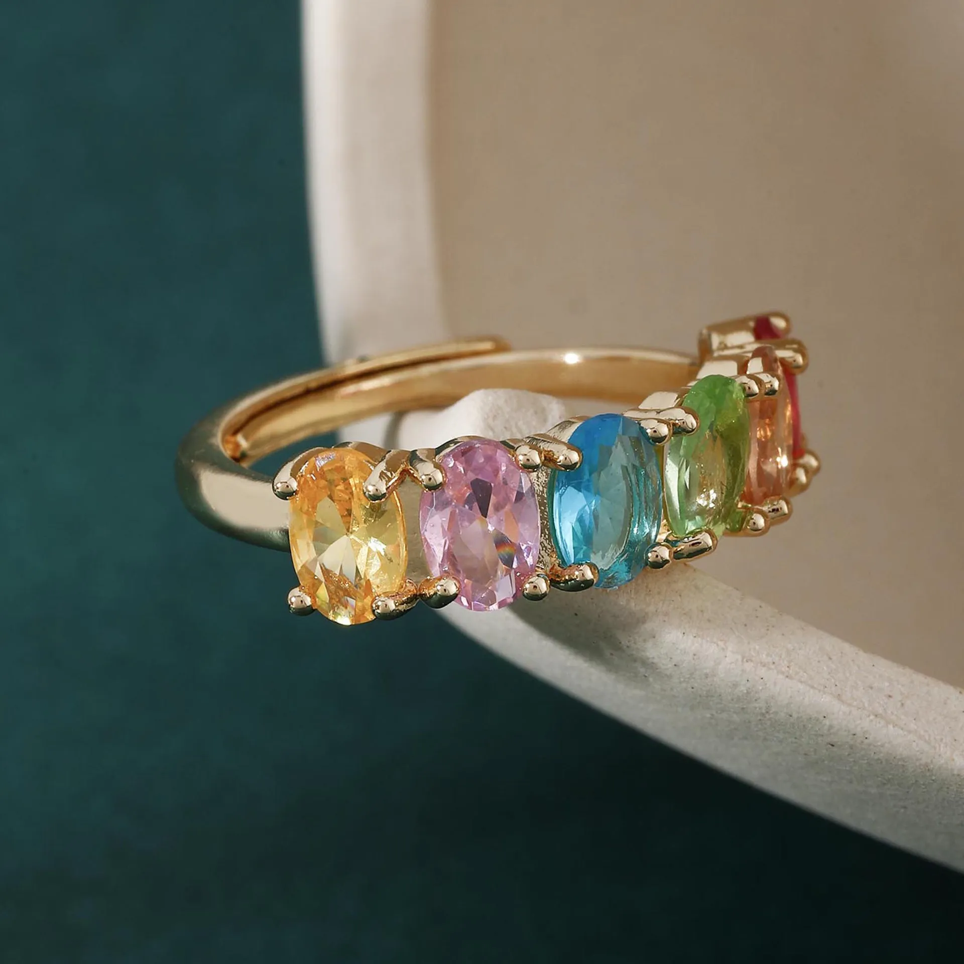 Women’s All-match Simple Retro Color Zircon Ring – Elegant & Versatile