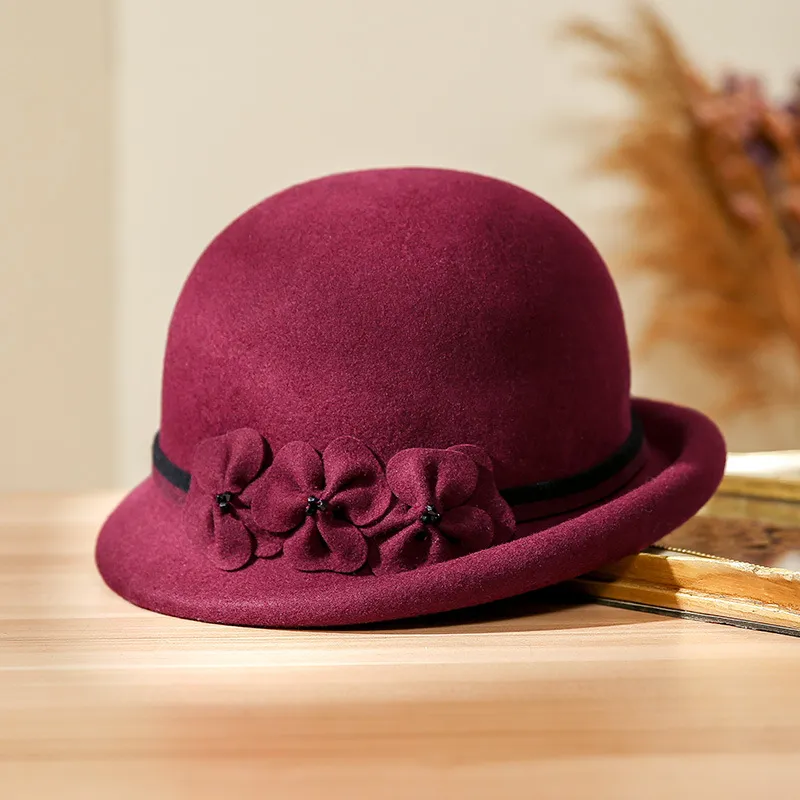 their wardrobe. With its classic beret design, soft wool fabric, and delicate floral embellishment, it brings sophistication and style to