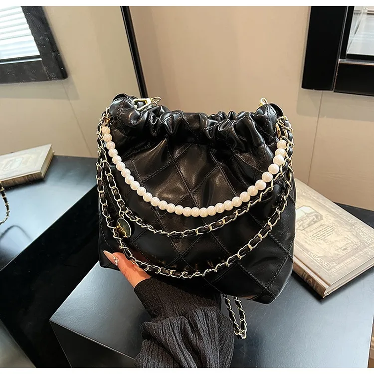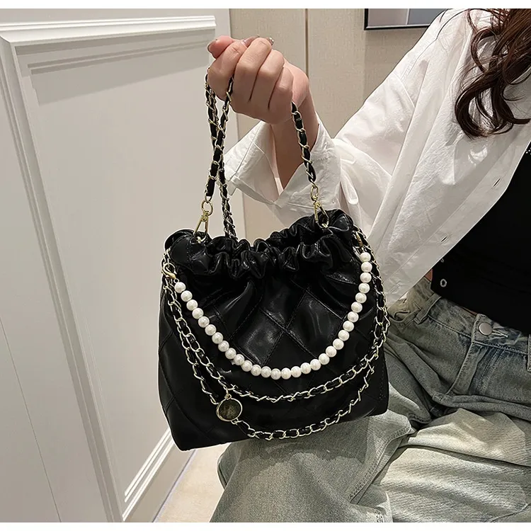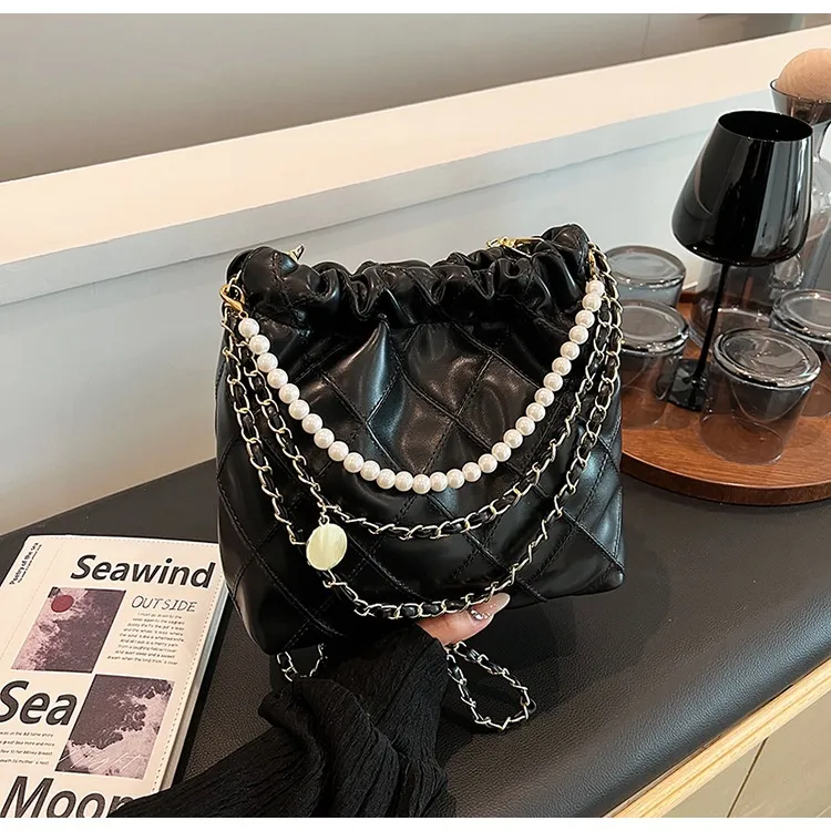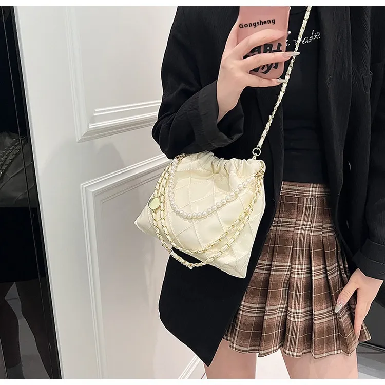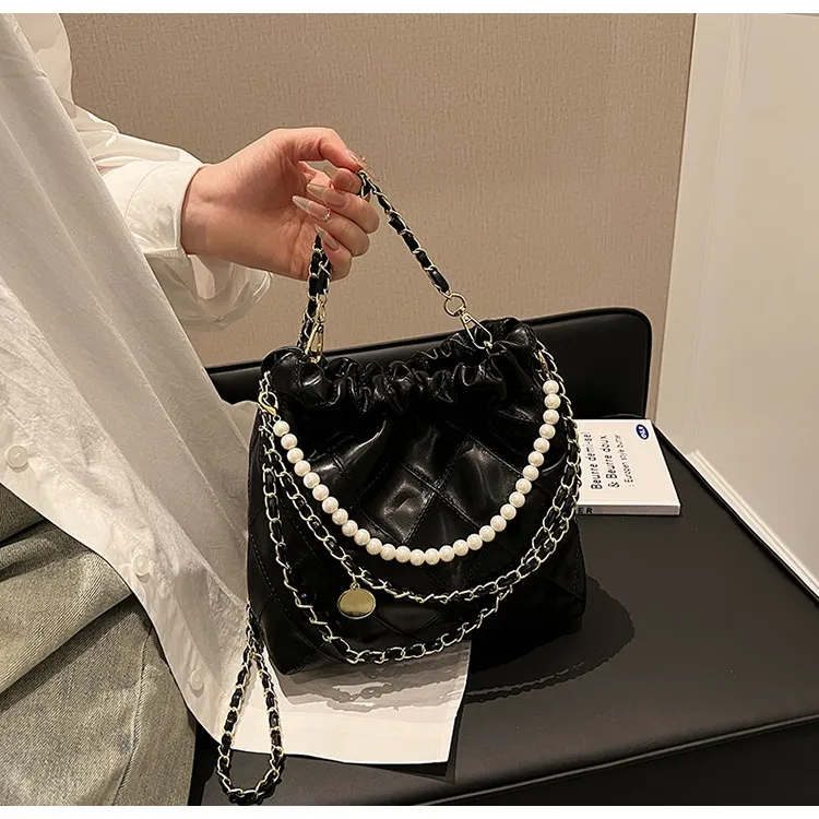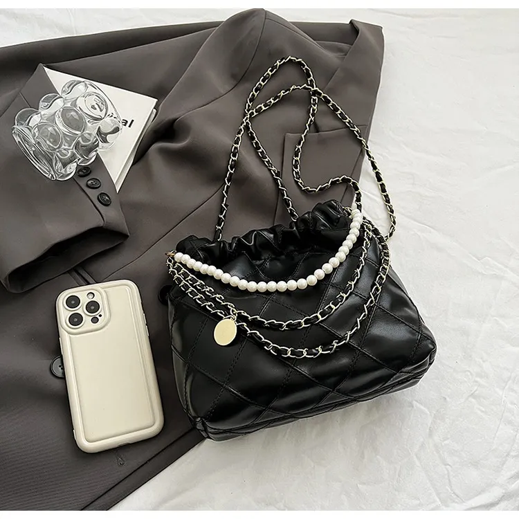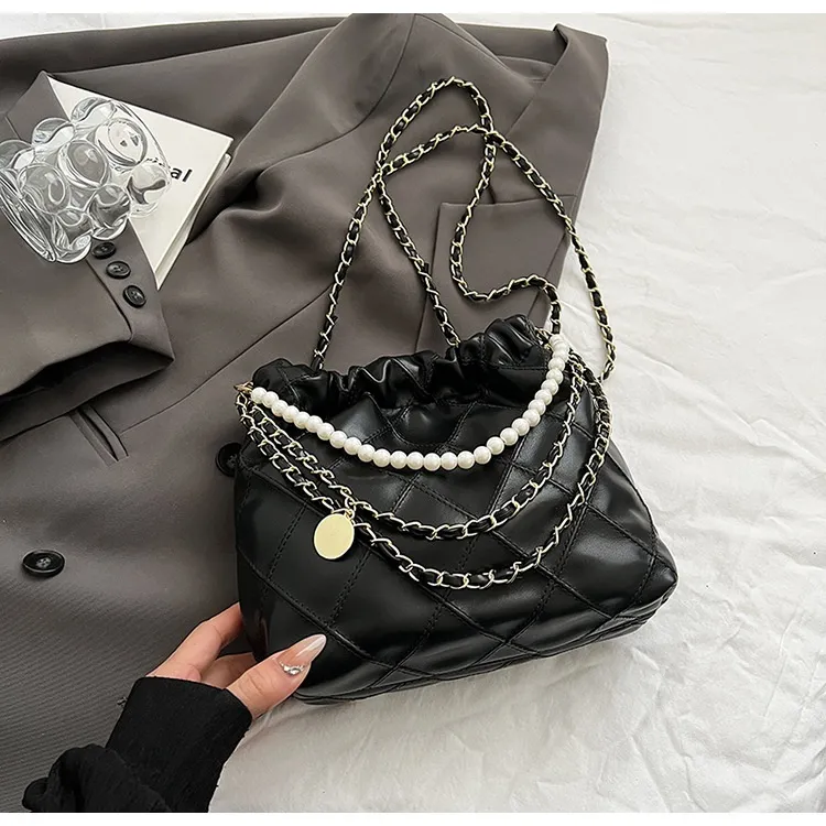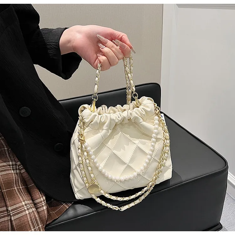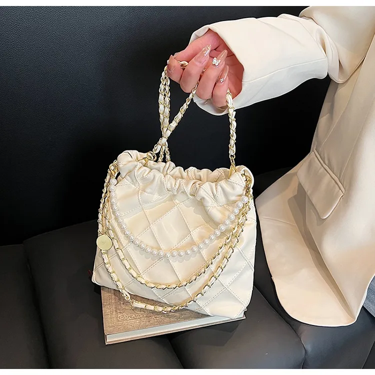 Women's Bag Popular Niche Texture Garbage Rhombus PU Hand