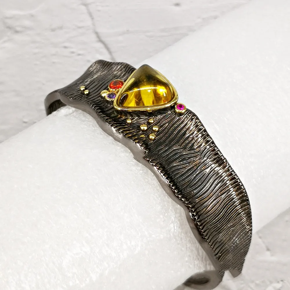Women’s Bracelet With Thick Opening and Yellow Stone: A Bold and Elegant Statement
