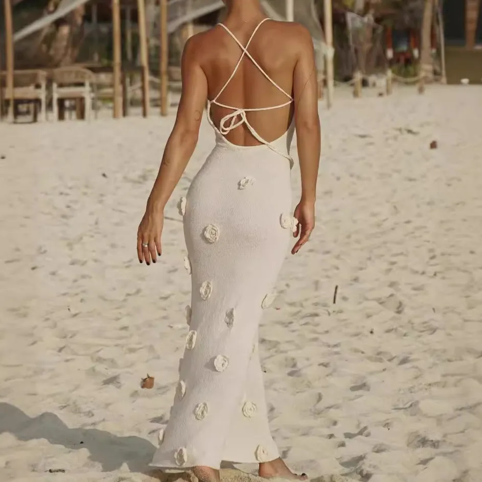 Discover the elegance of the Women's Braces Skirt Three-Dimensional Flower Knitted Backless Lace-up Dress, a perfect blend of sophistication and style. This dress is designed for the modern woman who values comfort without compromising on fashion. Whether you're attending a summer garden party or a casual day out, this dress is your go-to option.