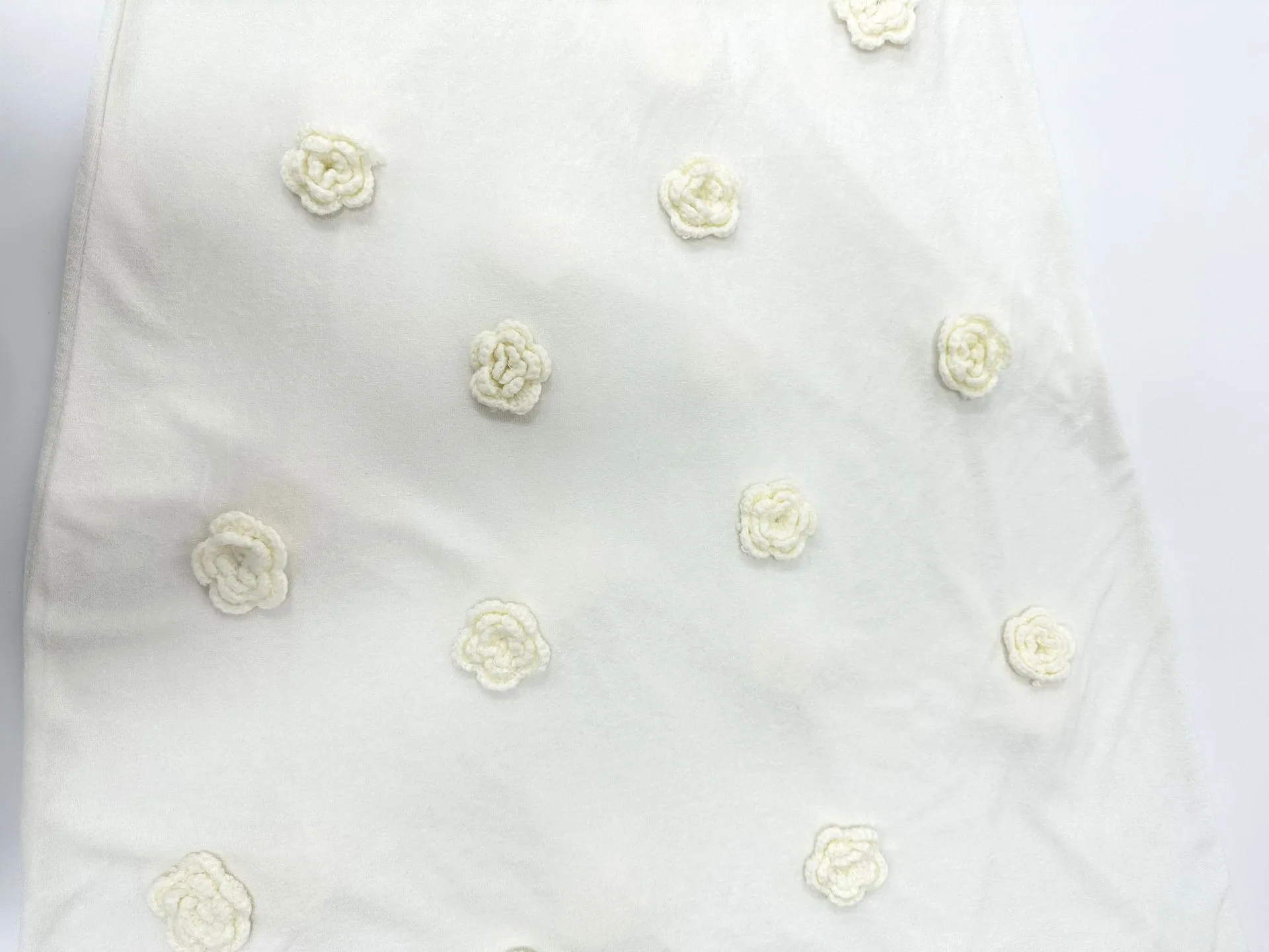 To maintain the quality of the knitted fabric and the three-dimensional flowers, it is recommended to hand wash the dress in cold water. Avoid using harsh detergents or bleach. Lay flat to dry to retain the shape and prevent any damage to the delicate knit.