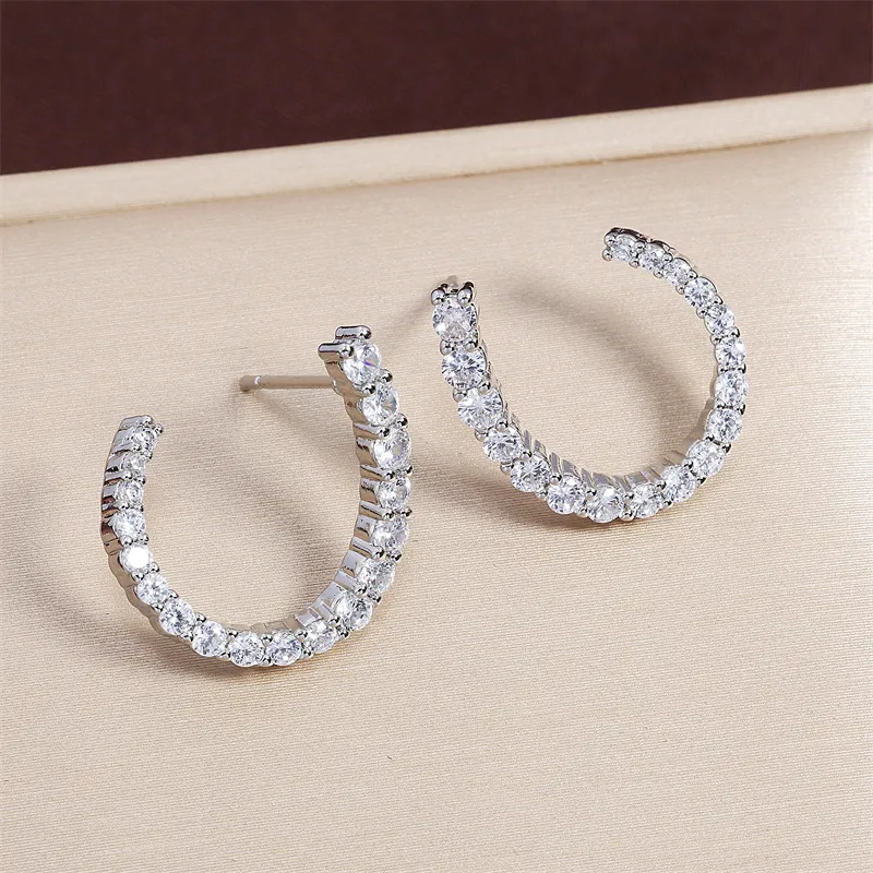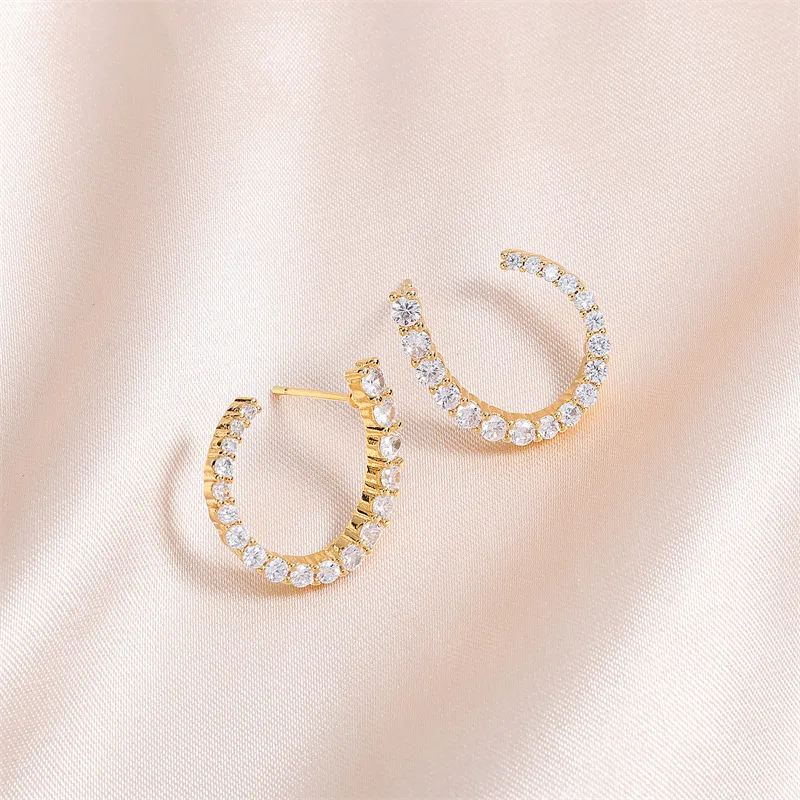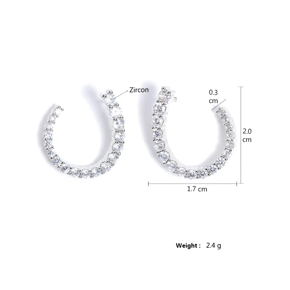 Women's C-shaped Stud Earrings With Rhinestones Fashion Zircon Simple Earrings