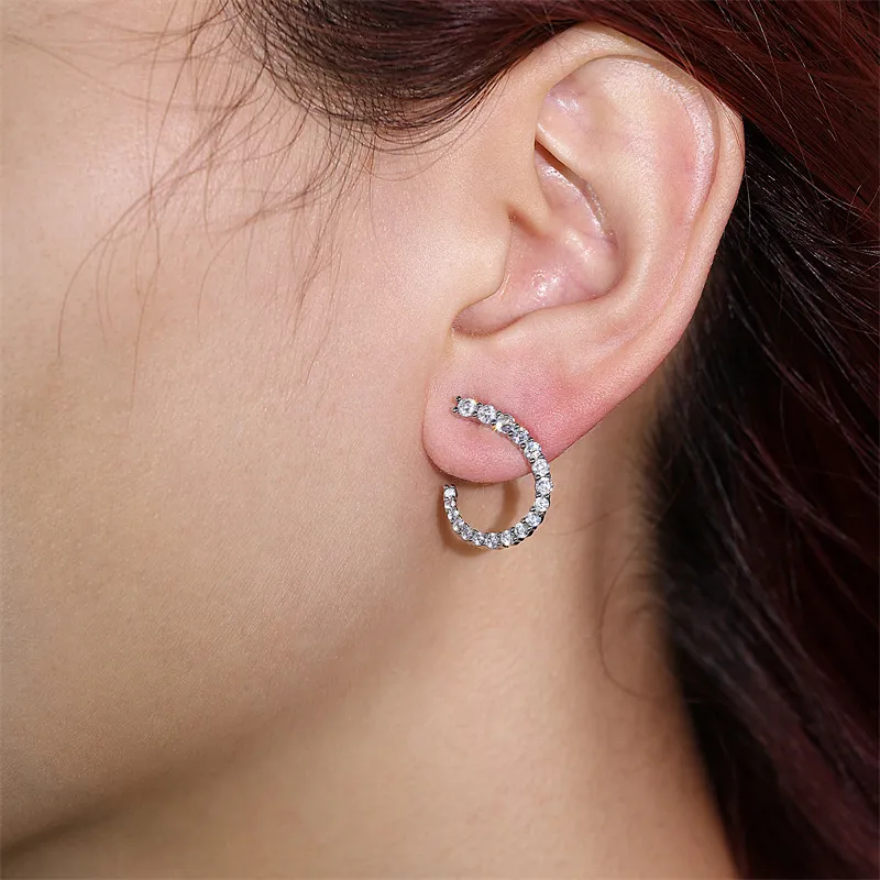 Unlike traditional studs, these earrings feature a unique C-shape, offering a modern twist on a classic look. This shape elegantly hugs the earlobe, making them both comfortable and trendy.