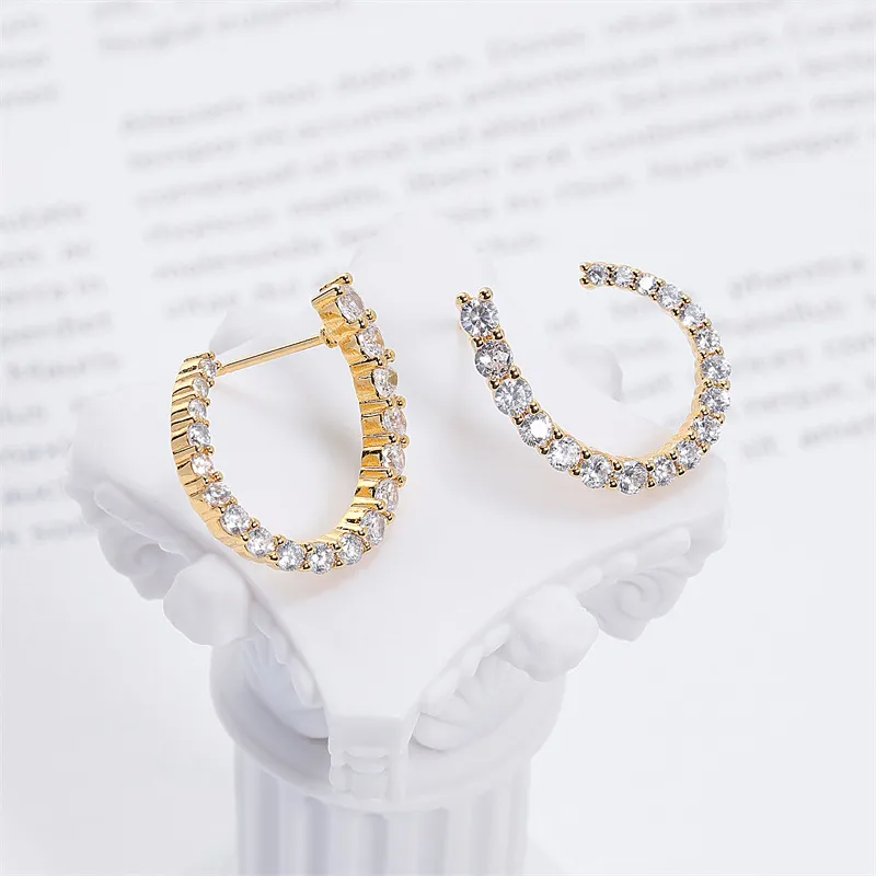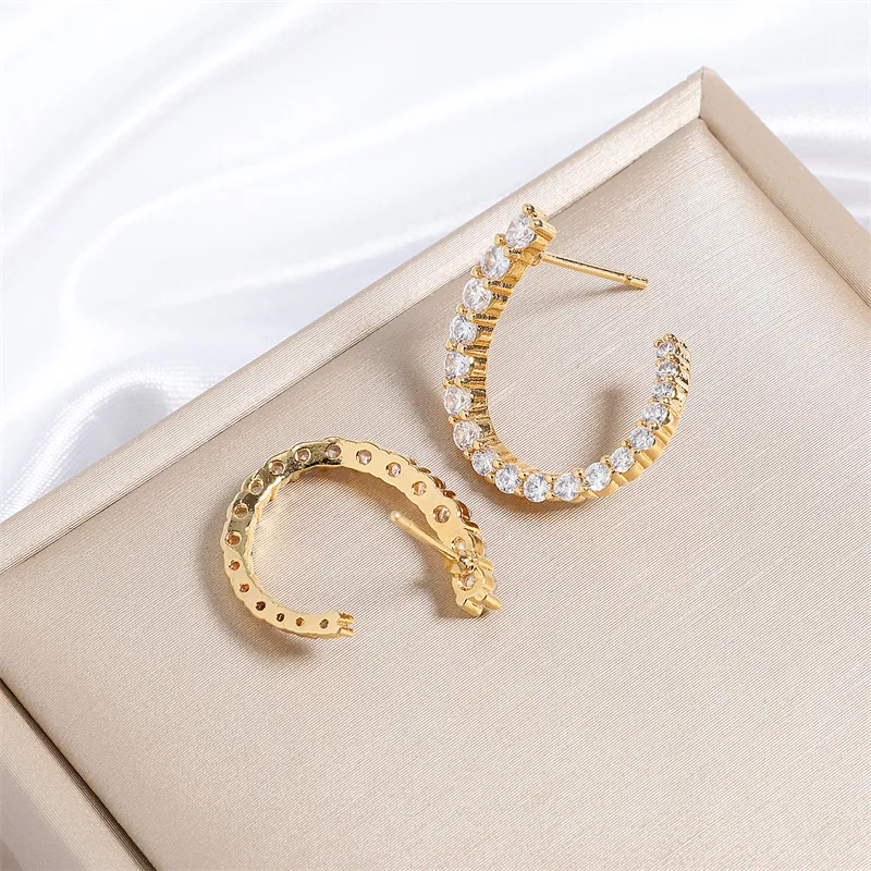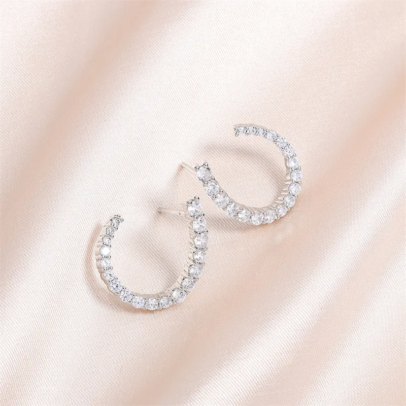Women's C-shaped Stud Earrings With Rhinestones Fashion Zircon Simple Earrings