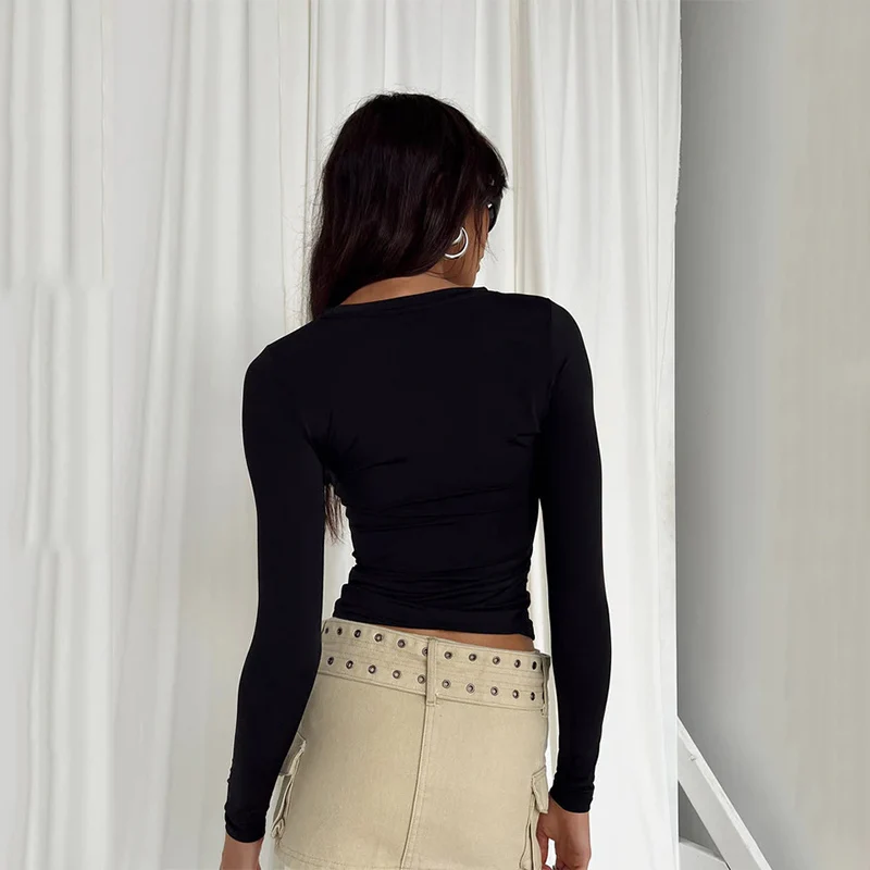 The Women’s Casual Long Sleeve T-Shirt is a versatile staple, perfect for the changing seasons of spring and autumn. With a slim fit and solid color design, this pullover offers a flattering silhouette that’s both stylish and comfortable. Ideal for layering or wearing on its own, this long sleeve tee makes a perfect addition to any casual wardrobe. The understated look works well for everyday wear or a streetwear-inspired outfit, allowing for a range of styling options that can suit both day and evening occasions.