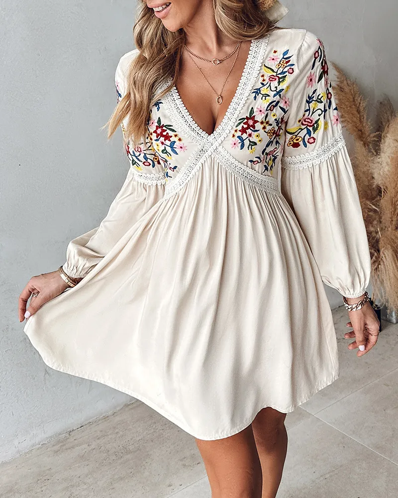 Women's Clothing Embroidered V-neck Casual Skirt