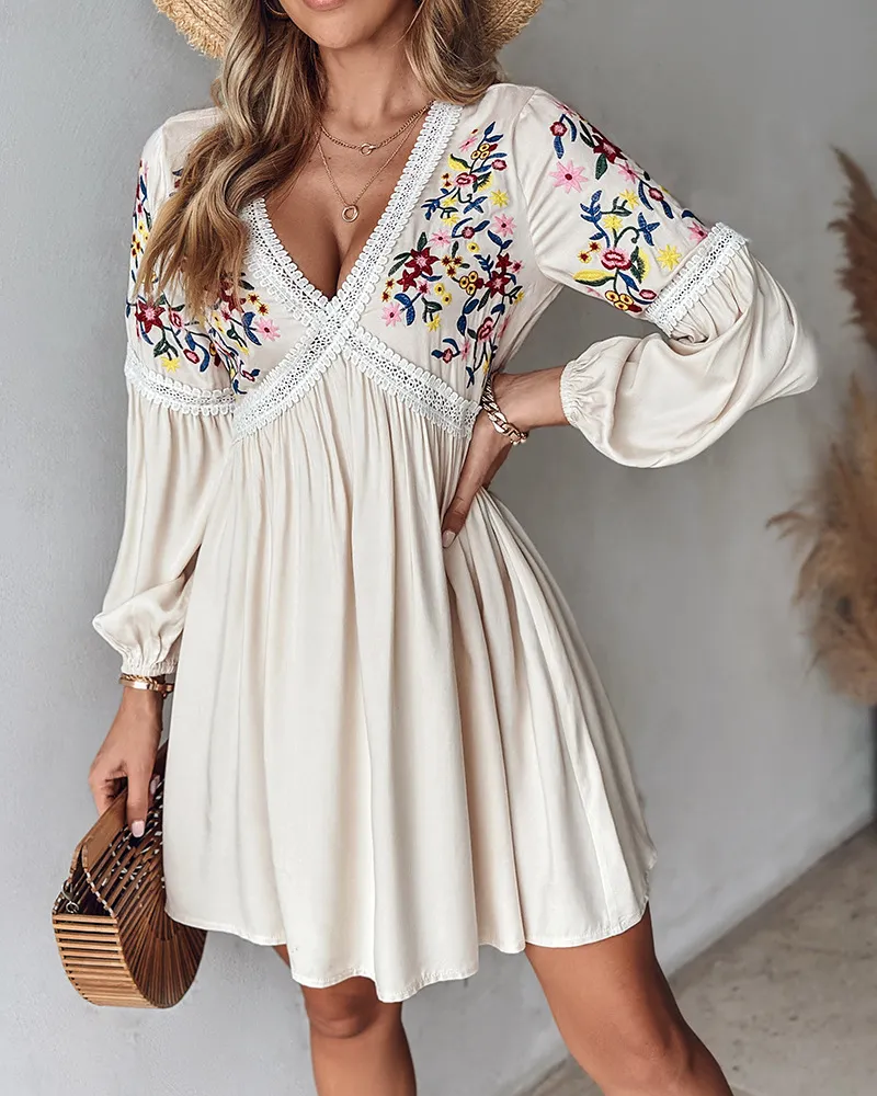 Women’s Embroidered V-neck Casual Skirt
