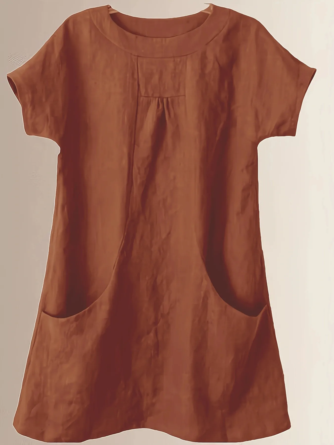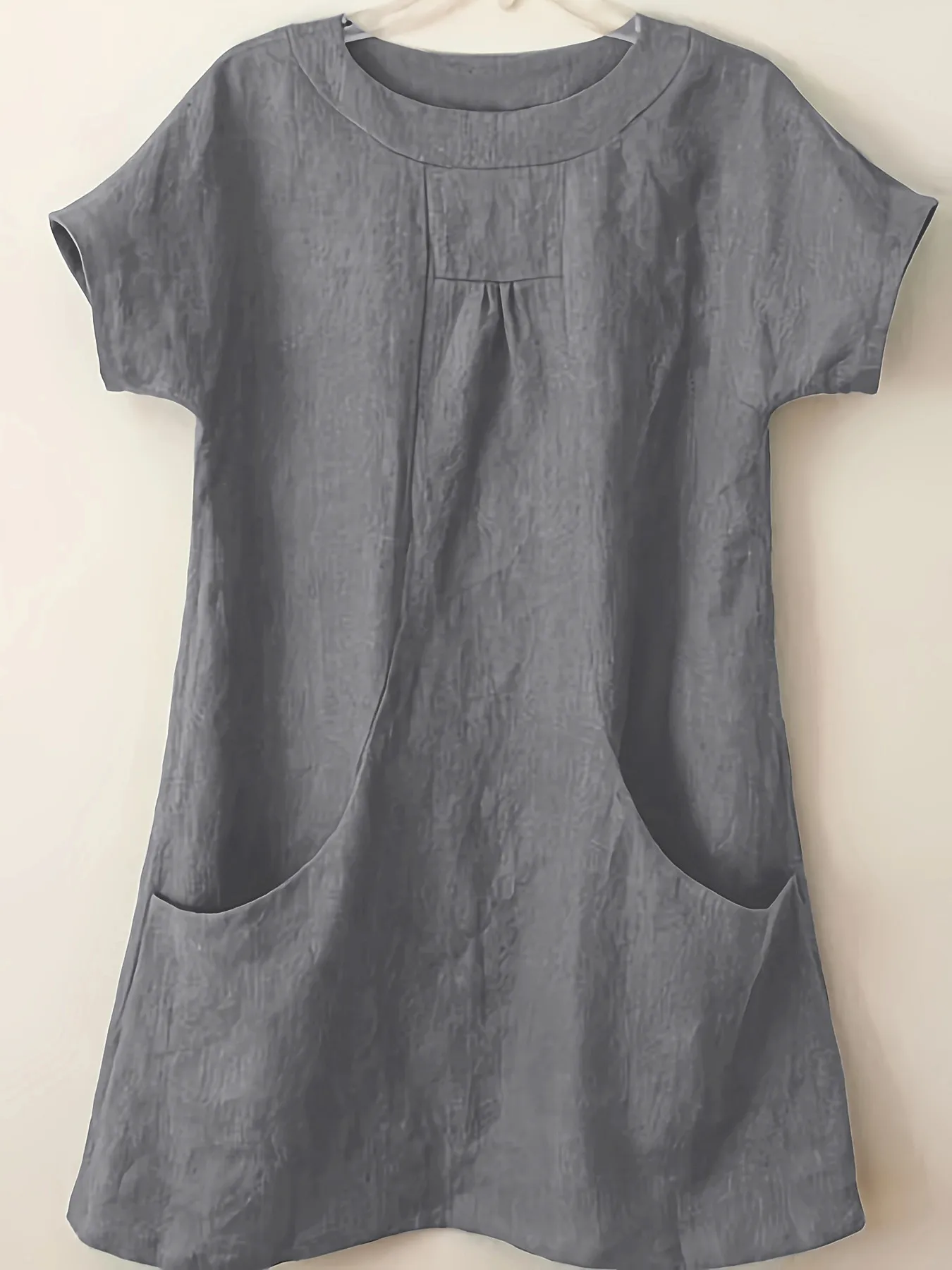 Featuring a flattering round neckline and a practical front pocket, this shirt combines simplicity with functionality. The relaxed fit allows for easy movement and a flattering silhouette on all body types, making it an ideal choice for layering or wearing on its own. Its timeless design pairs effortlessly with jeans, skirts, or shorts, making it a go-to piece for any casual occasion.