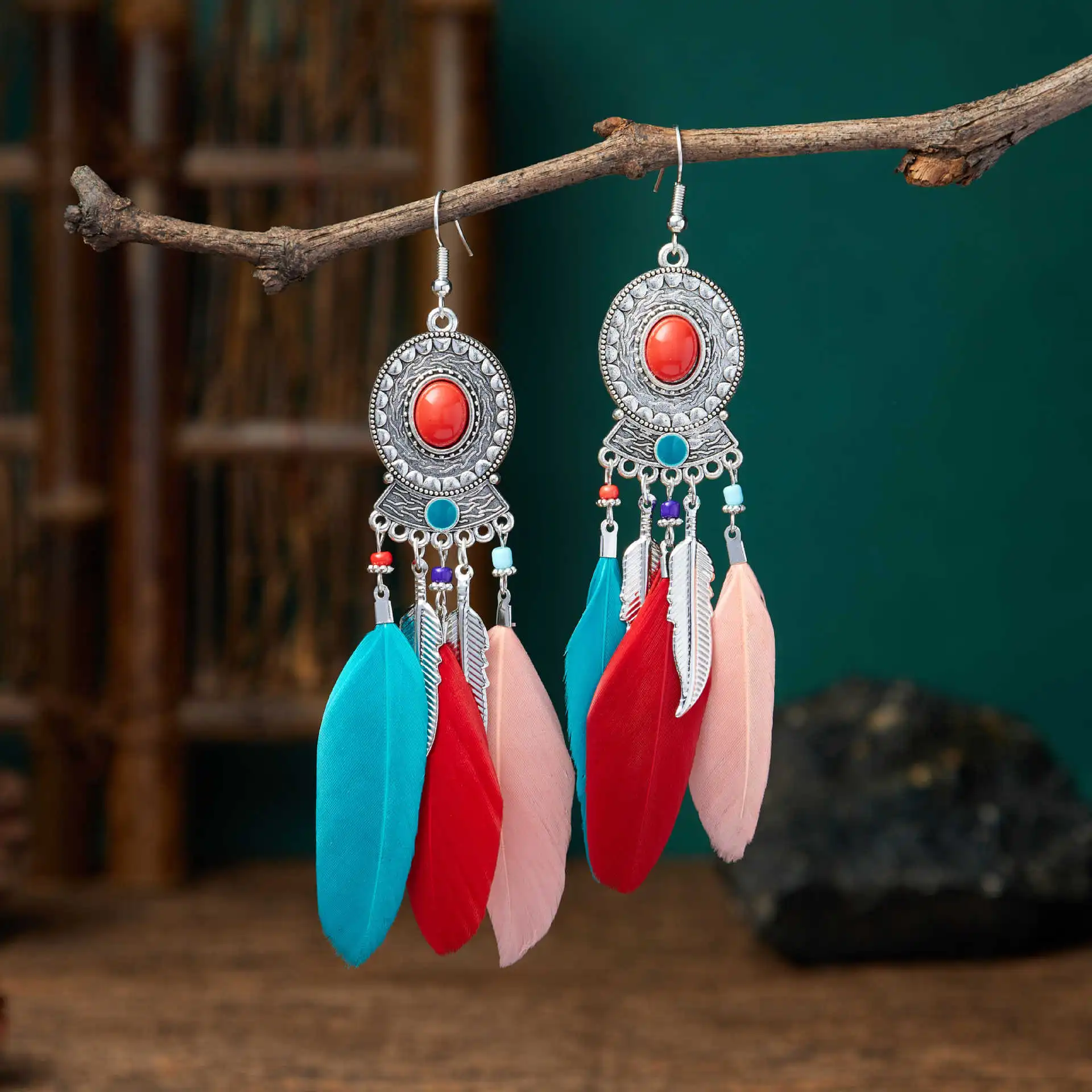 yet eye-catching design. The bright and rich colours of the feathers make these earrings stand out, adding an energetic and