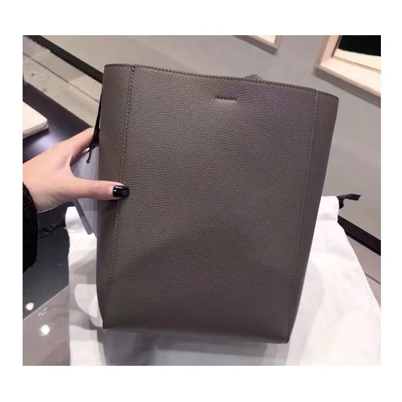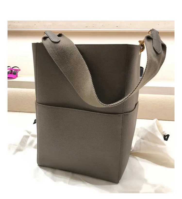 Women's Fashion All-match Wide Shoulder Strap Cowhide Bucket Bag