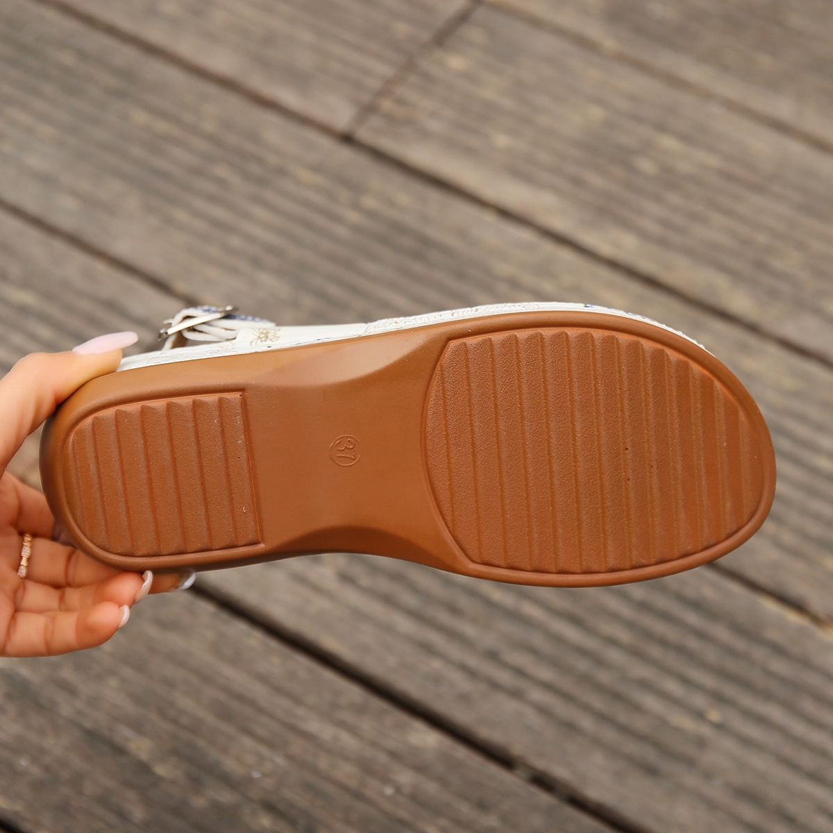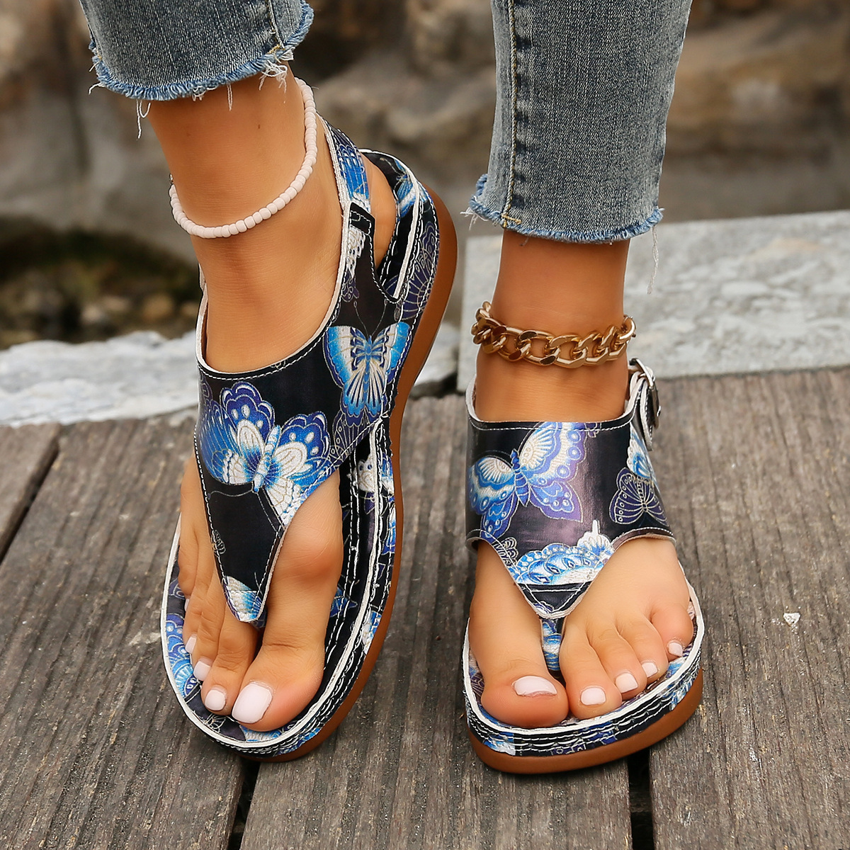 Back Buckle Closure The back buckle closure not only adds to the stylish look but also ensures a secure and adjustable fit. This design element provides both aesthetics and functionality, keeping your sandals comfortably in place.