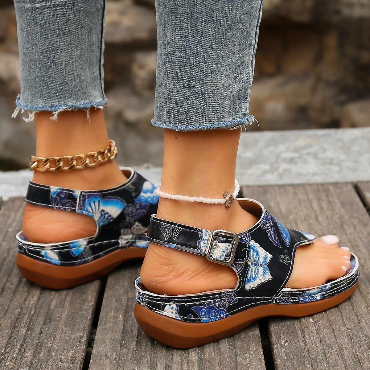 All-day Comfort Designed with both style and comfort in mind, these sandals are perfect for all-day wear. The combination of the wedge heel, cushioned insole, and secure buckle ensures you can walk comfortably without sacrificing style.