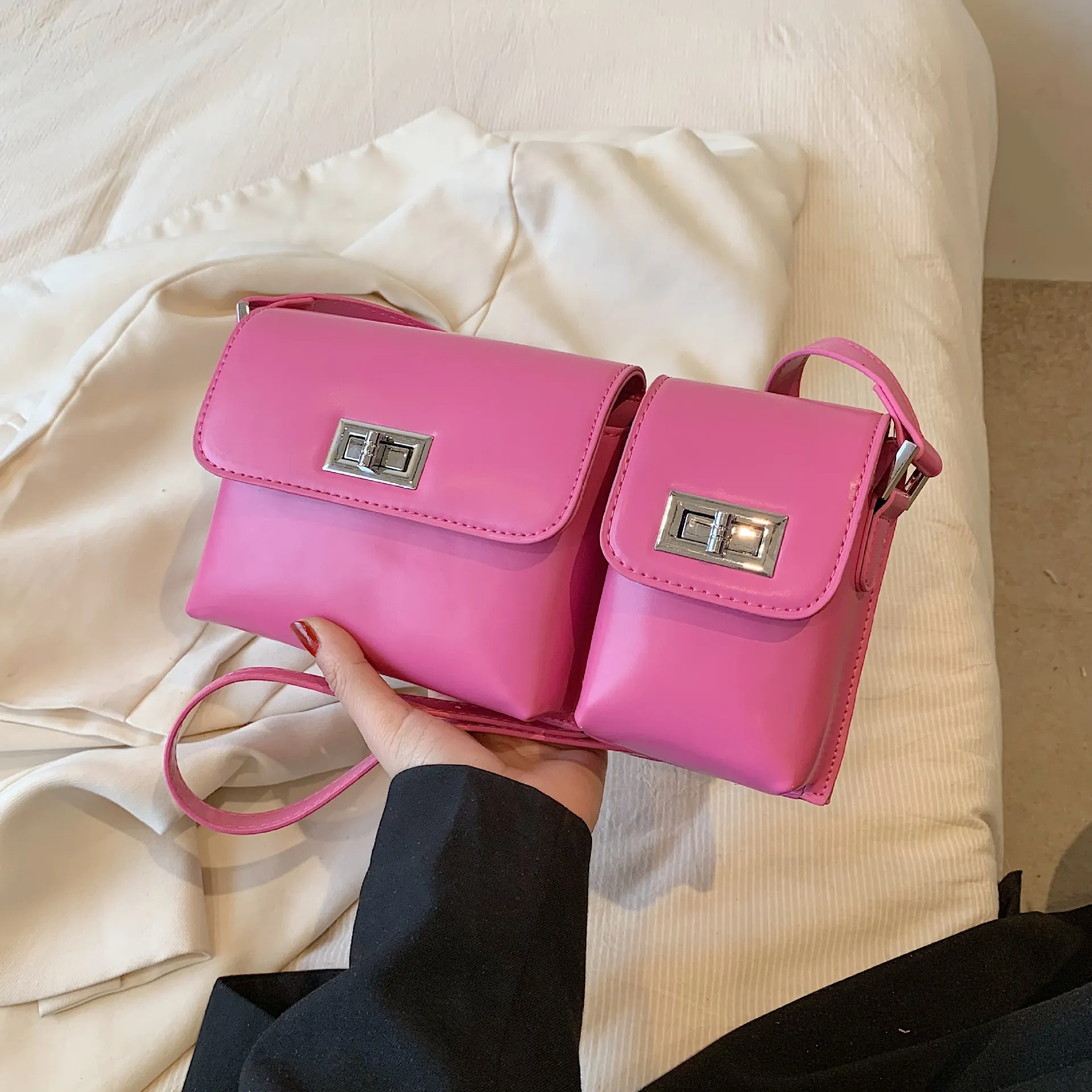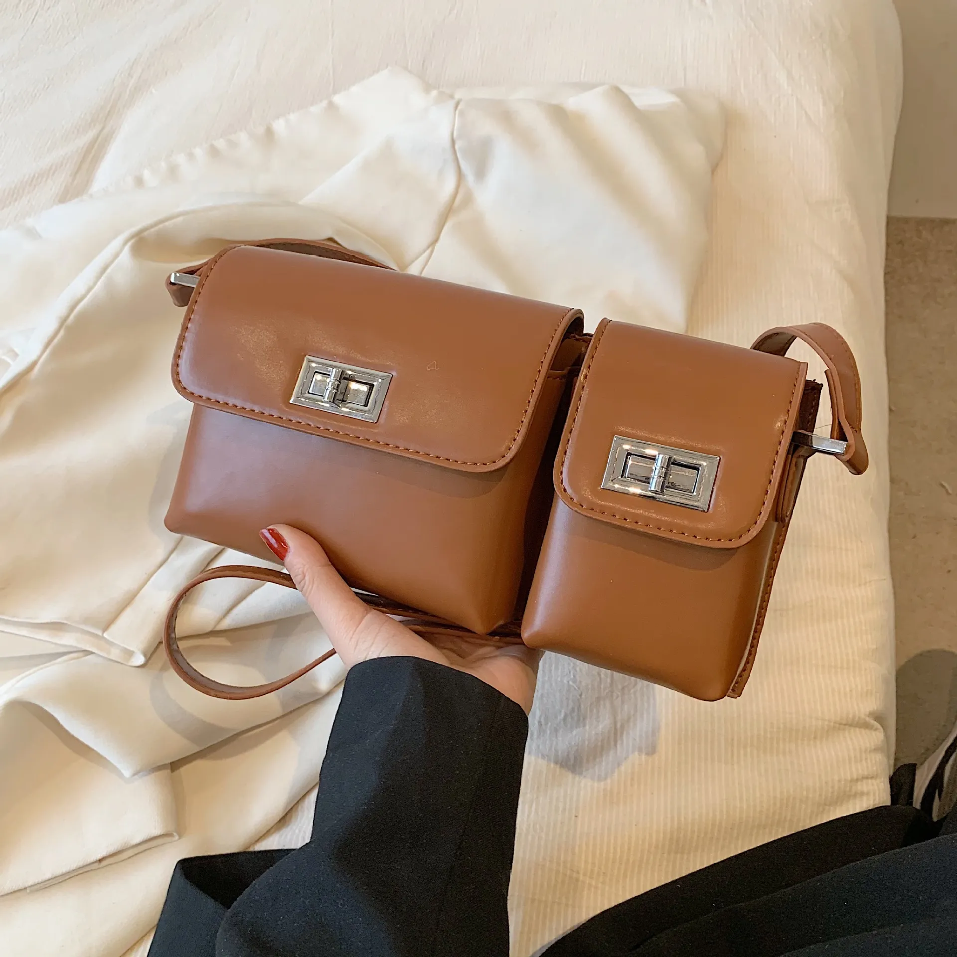 Women's Fashion Double Pocket Underarm Retro Shoulder Messenger Bag