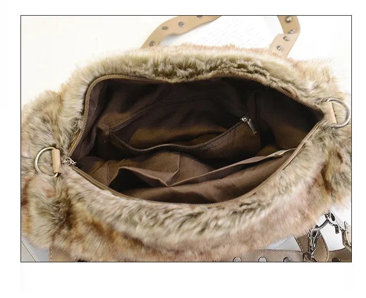 Women's Fashion Fur Large Capacity Biker Bag
