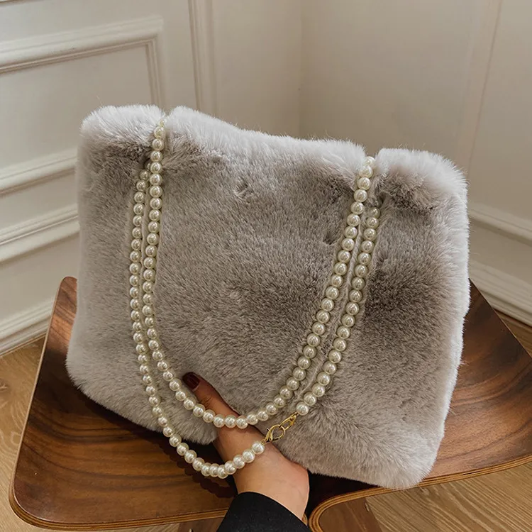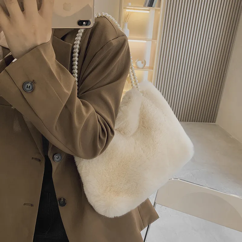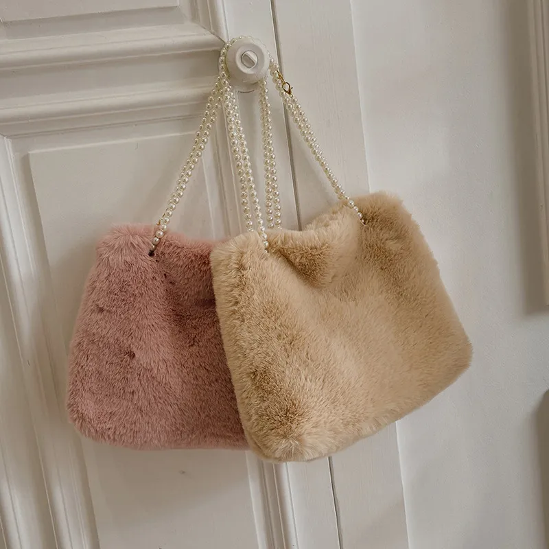 Women's Fashion Large Capacity Pearl Plush One-shoulder Crossbody Bag