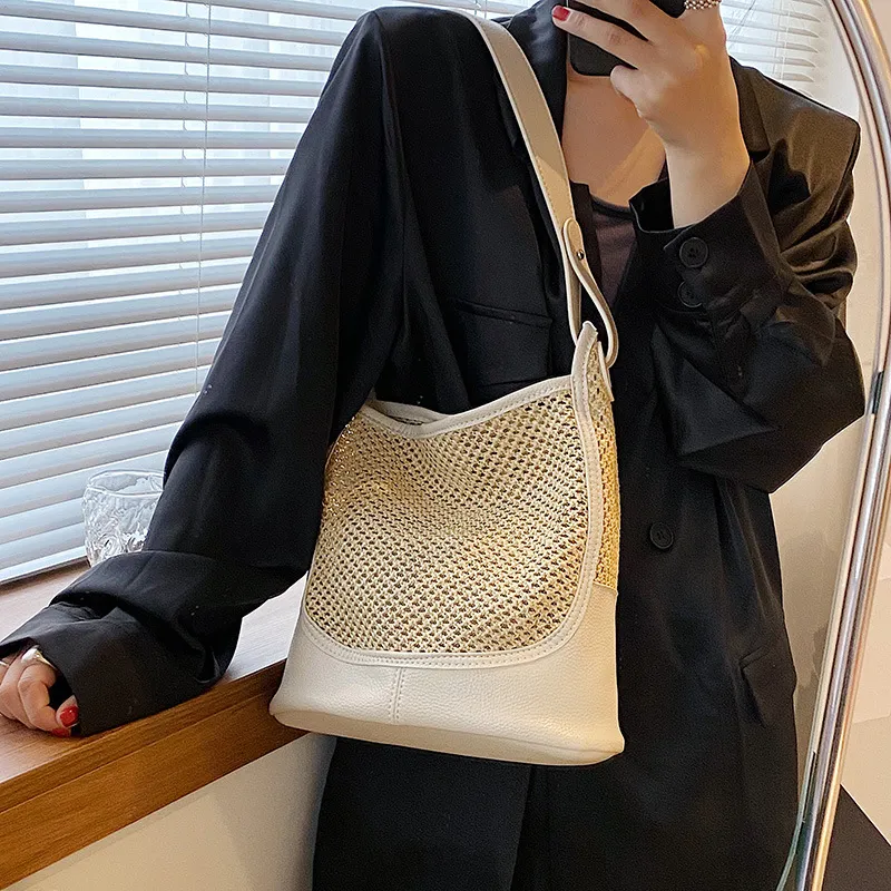 Add a touch of effortless charm to your wardrobe with the Women's Fashion Large Capacity Tote Straw Bag. This stylish bag combines the natural appeal of straw with a large, spacious design that is perfect for carrying all your essentials. Whether you're heading to the beach, running errands, or out for a casual lunch, this tote bag offers both fashion and functionality. The woven straw texture brings a relaxed yet chic vibe, while the sturdy construction ensures durability for everyday use.