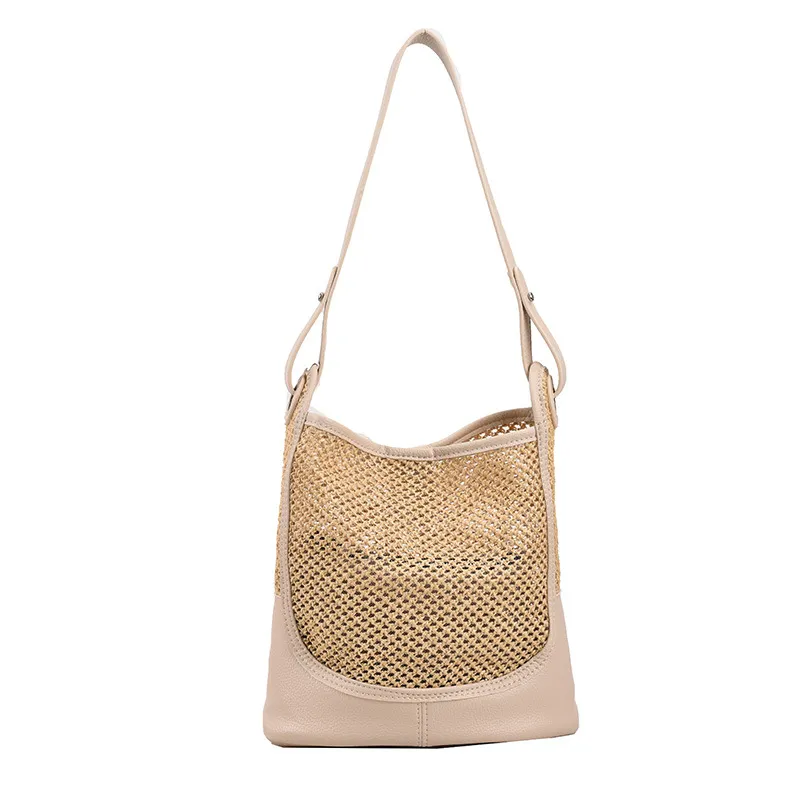 - Woven straw texture for a chic, natural look