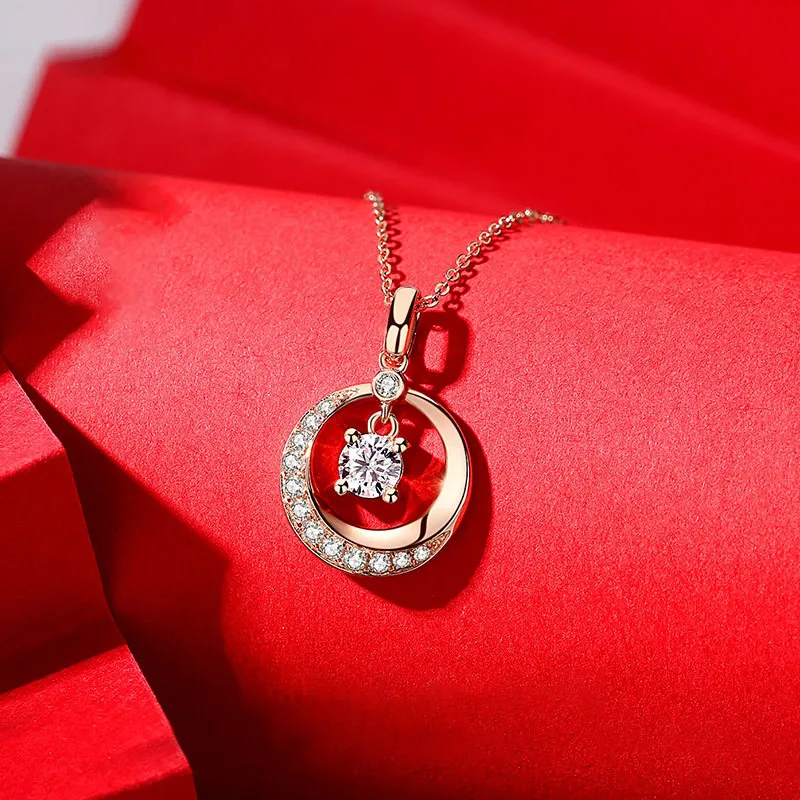 Women's Fashion Light Luxury 18K Rose Gold Moissanite Necklace