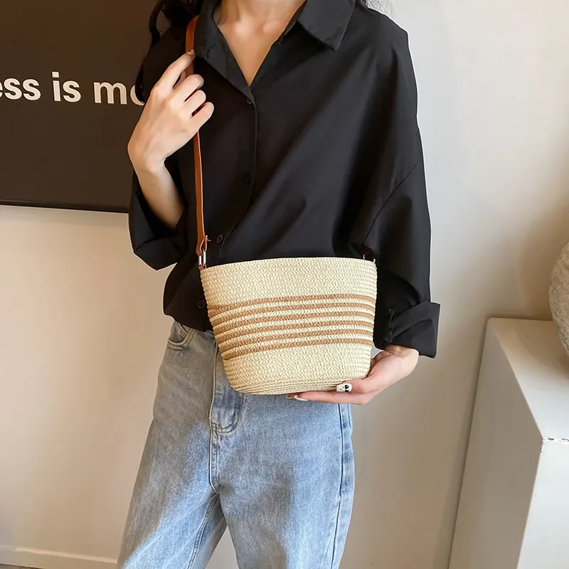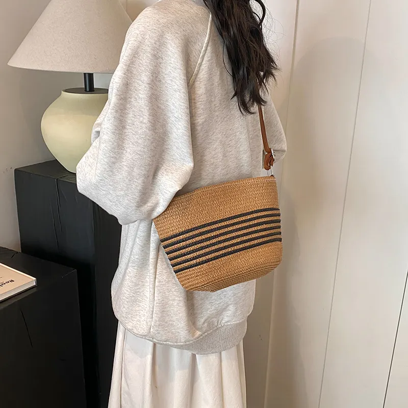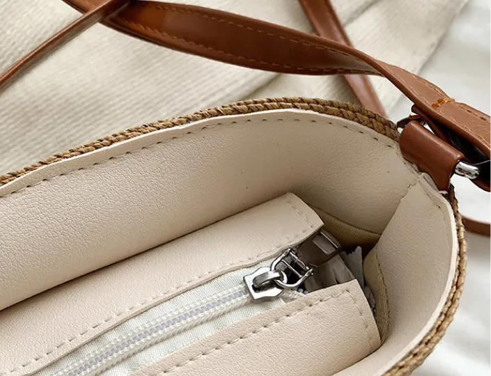 Whether you’re heading to the beach, a picnic, or a casual outing, this bag complements a variety of outfits and occasions. Its neutral tones and classic design make it easy to pair with any wardrobe.