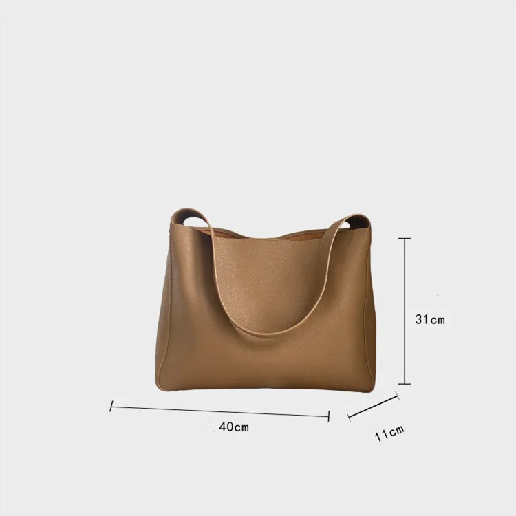 Women's Fashion Simple Large Capacity Genuine Leather Bucket Bag