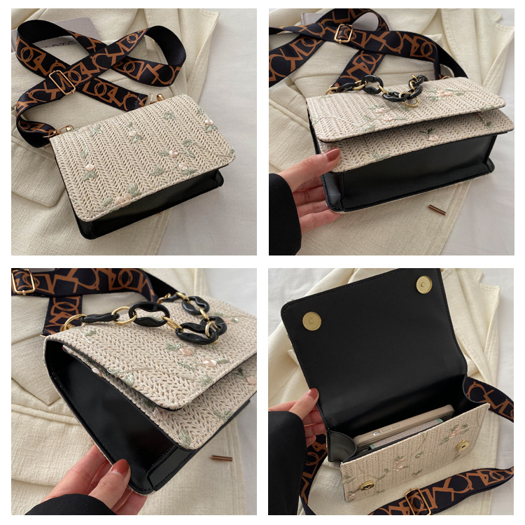 Women's Fashion Straw Small Square Bag Acrylic Chain