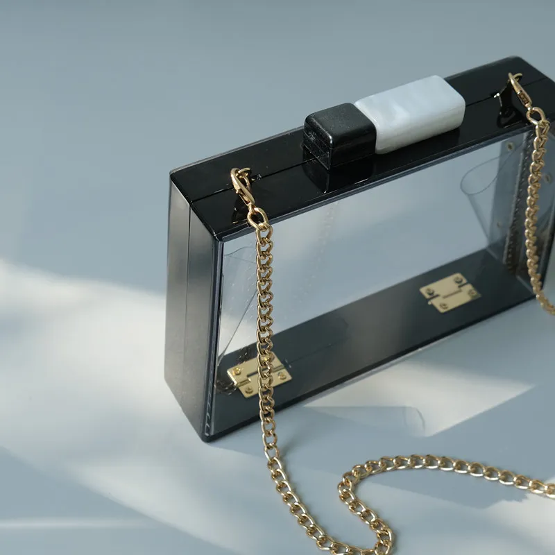 Whether you're attending a cocktail party, a wedding, or a night out on the town, this acrylic tote bag adds a contemporary flair to your outfit. The sturdy handle ensures easy carrying, while the chic design complements both formal and semi-formal attire. This is the ideal accessory for women who love to stand out with a trendy, fashion-forward evening bag.
