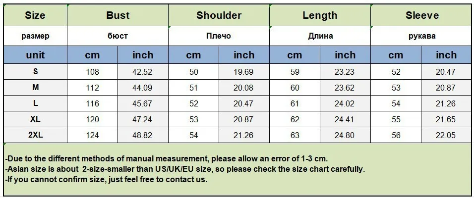 allow 2-3cm differences due to manual measurement. 2. Please check the size chart carefully before you buy the item, if you don't know how