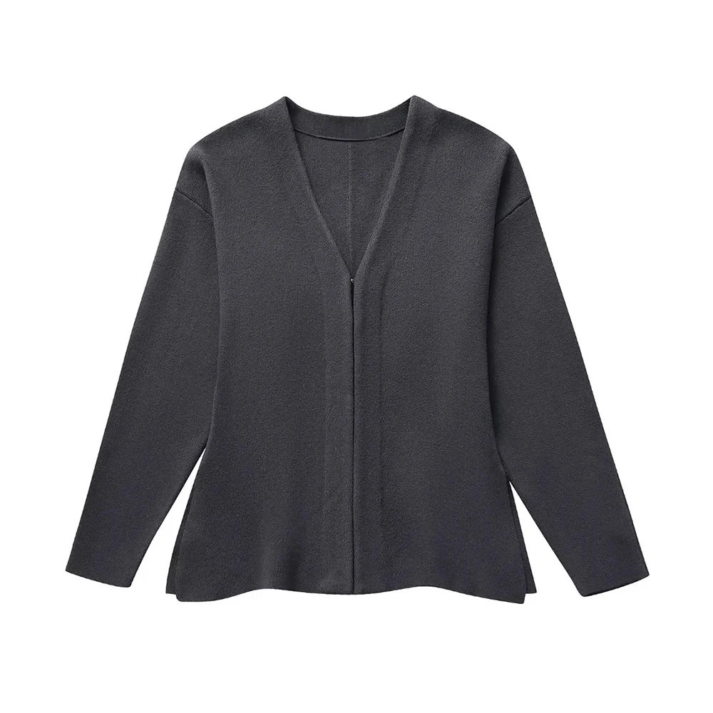 Add a touch of sophistication to your wardrobe with this Women's Front Hook Fitted Knit Cardigan, a chic layering piece that combines comfort and style. Featuring a flattering V-neckline and elegant front hook closure, this fitted cardigan sweater is designed to enhance your silhouette while providing a cozy layer for cool weather. The side split hem adds a modern twist to the classic cardigan design, giving it a unique flair that elevates any outfit.