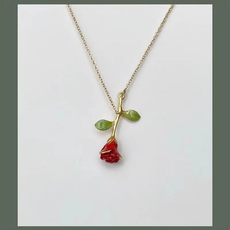 Women's Handmade Jewelry Rose Hand Painted Necklace