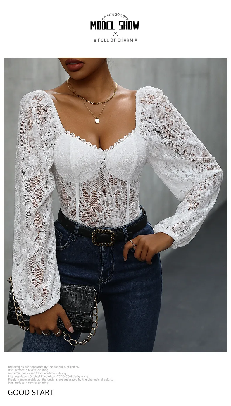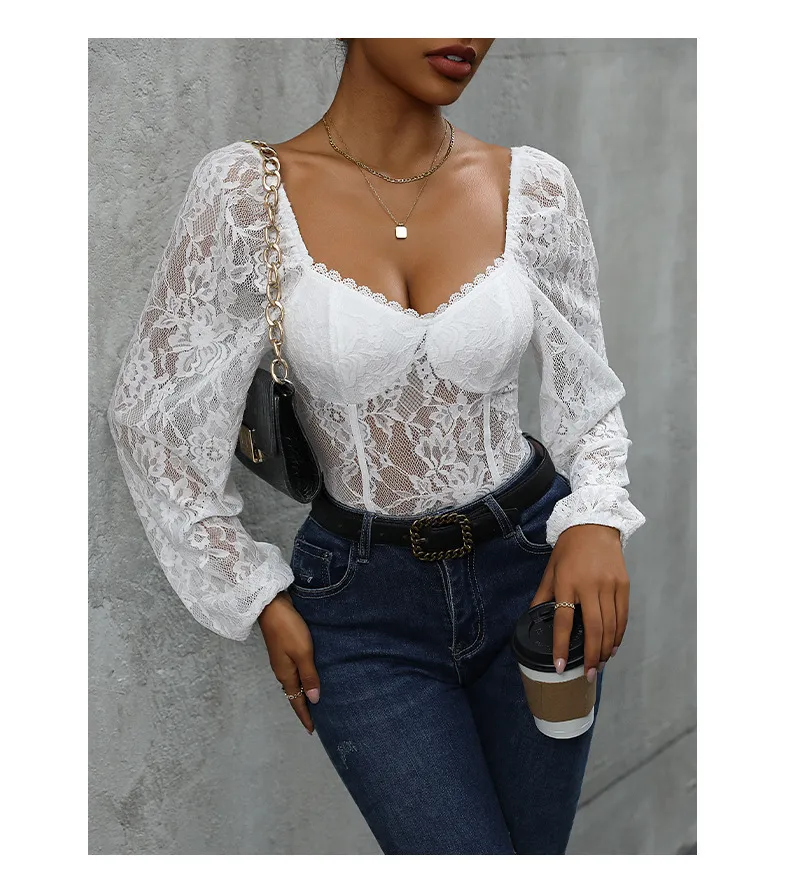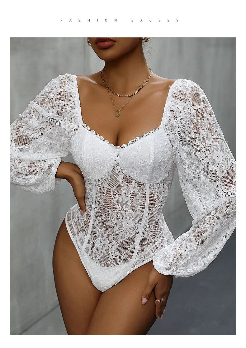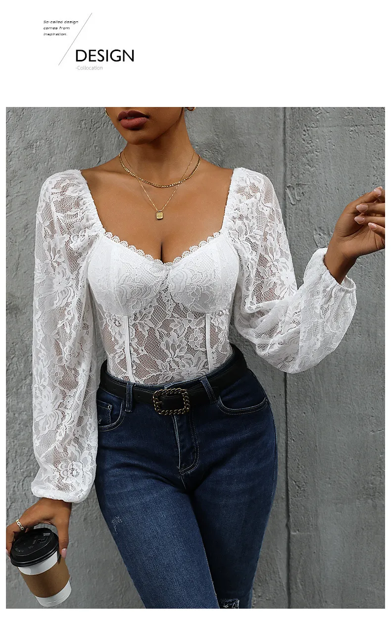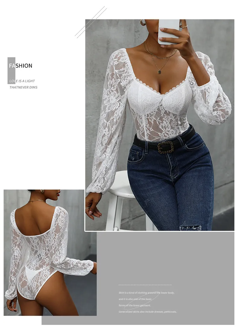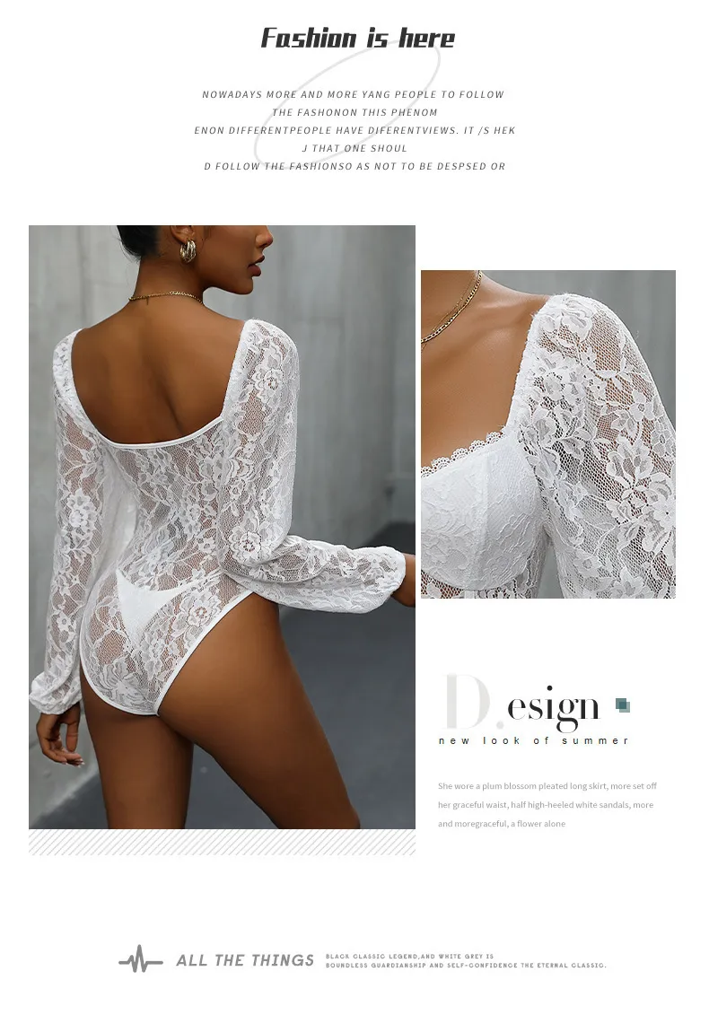 Design and Material Crafted from high-quality polyester fiber, this jumpsuit offers a medium elastic fit, ensuring comfort without compromising on style. The lace stitching adds a delicate touch to the overall design, enhancing the feminine appeal of the outfit. The jumpsuit features a high waist and long sleeves, making it suitable for various seasons. The fabric is thin yet durable, making it ideal for layering or wearing on its own.