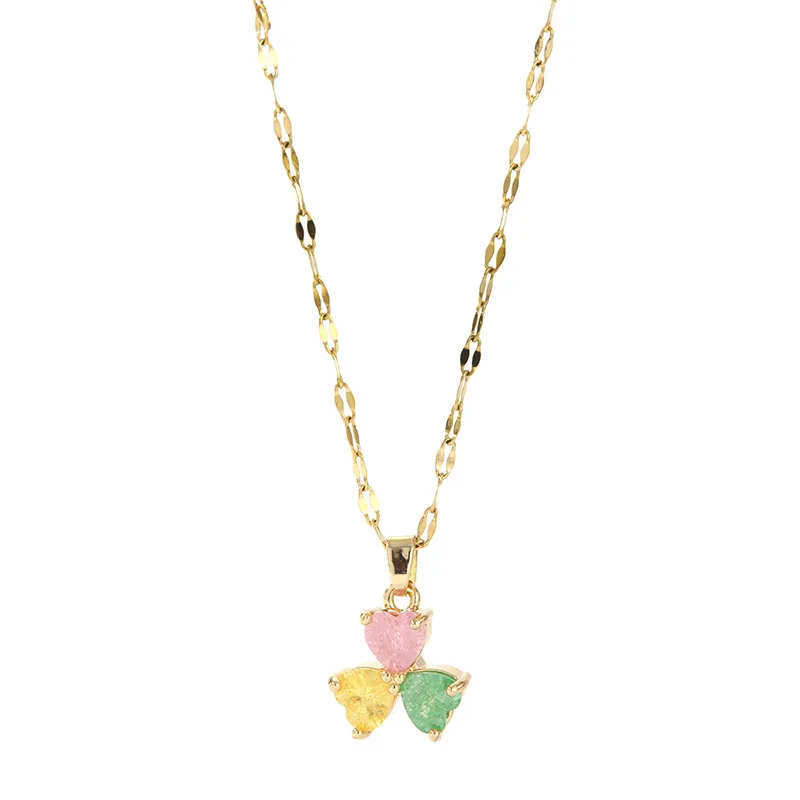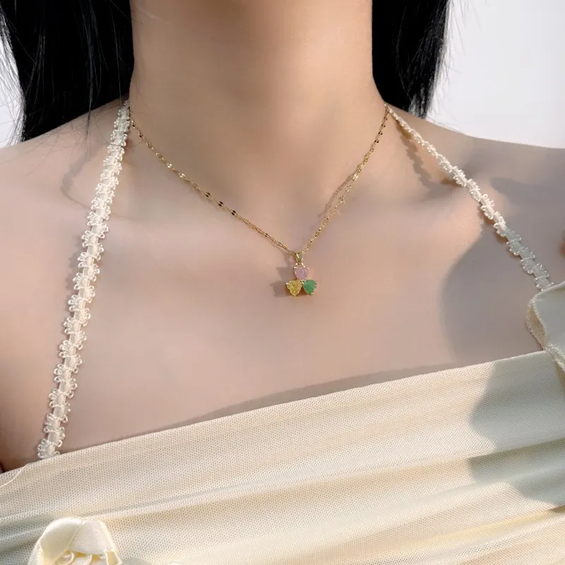 Women's Heart-shaped Clover Pendant Necklace