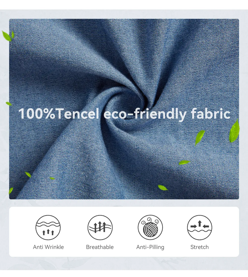 Tencel Lyocell Fabric: Made from eco-friendly Tencel Lyocell, the fabric is soft, breathable, and lightweight, making it