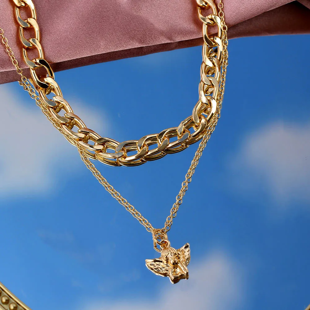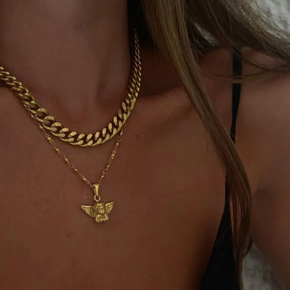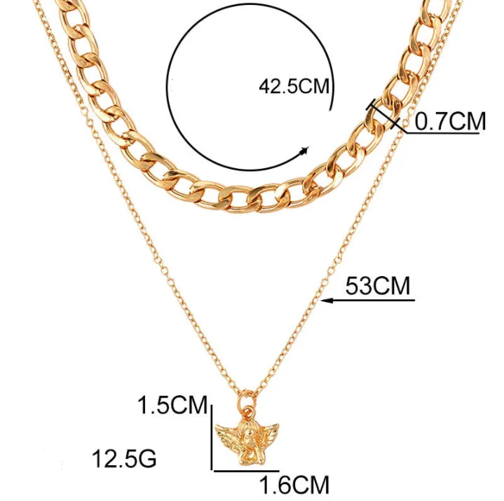 Women's Hip Hop Punk Angel Pendant Double Layer Necklace