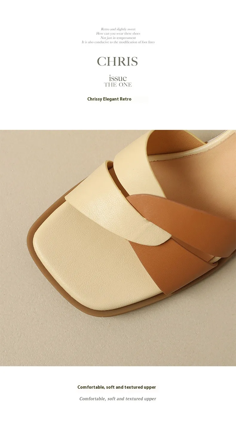 Key Features of the Women's Hollow Color Matching Chunky Heel Sandals