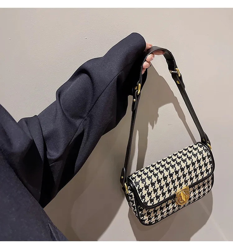 Women's Houndstooth One Shoulder Underarm Baguette Bag