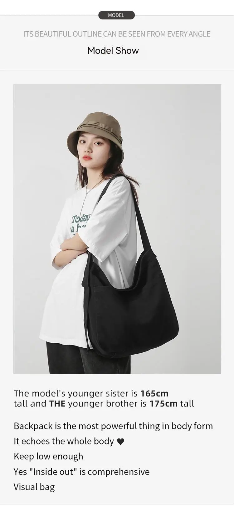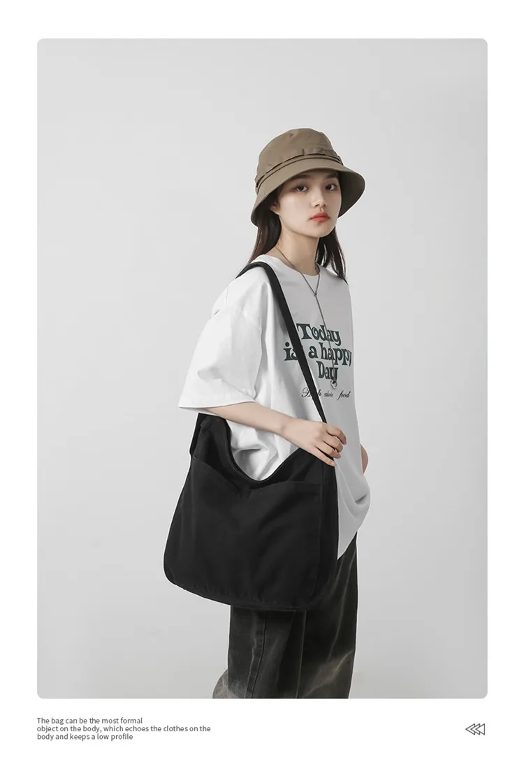 Women's Large Capacity Idle Style Artistic Simple Canvas Bag School College Students