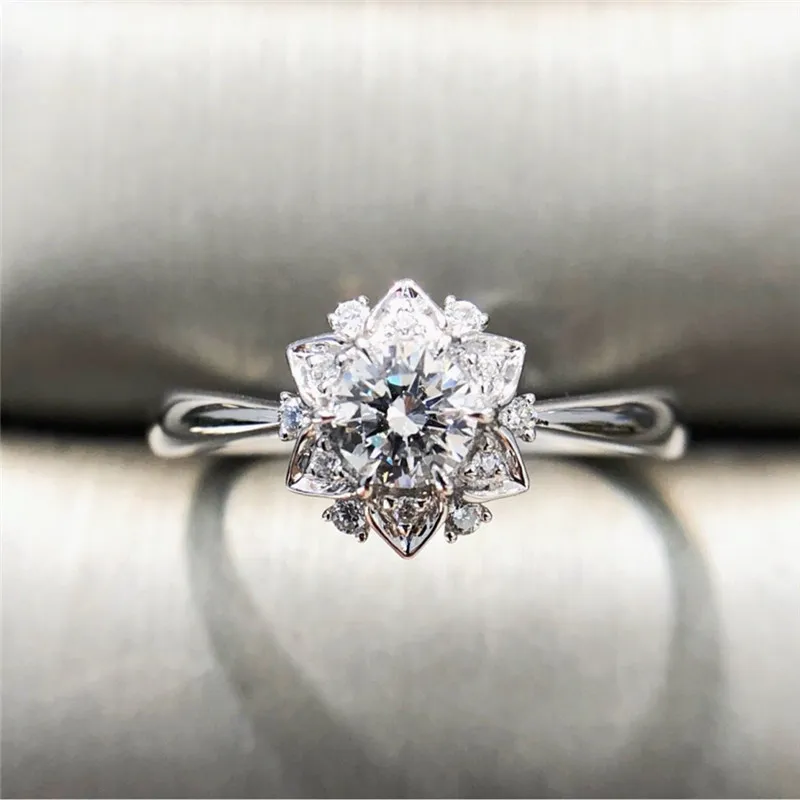 Women's Luxury Flower-Shaped Artificial Zircon Ring
