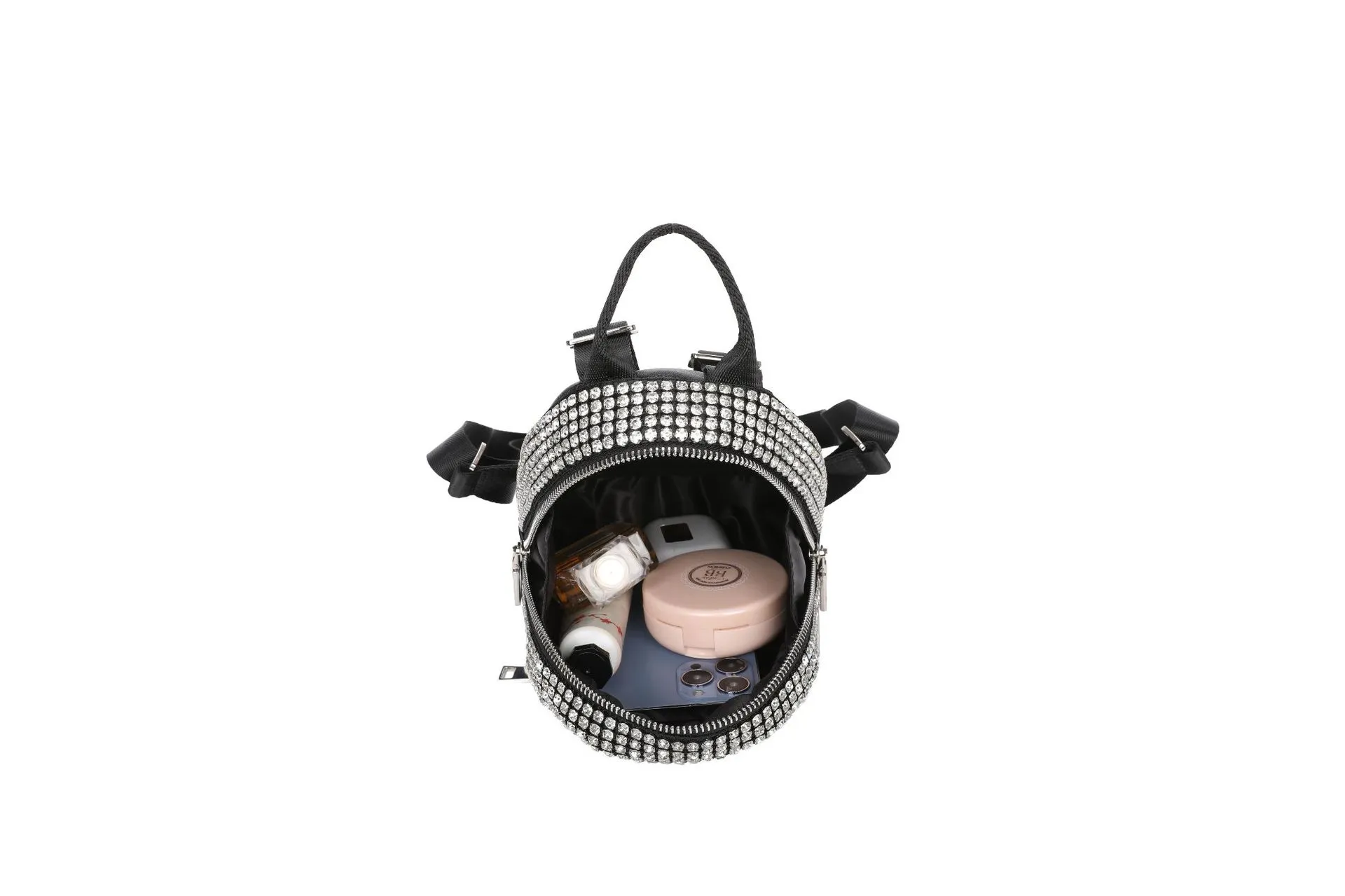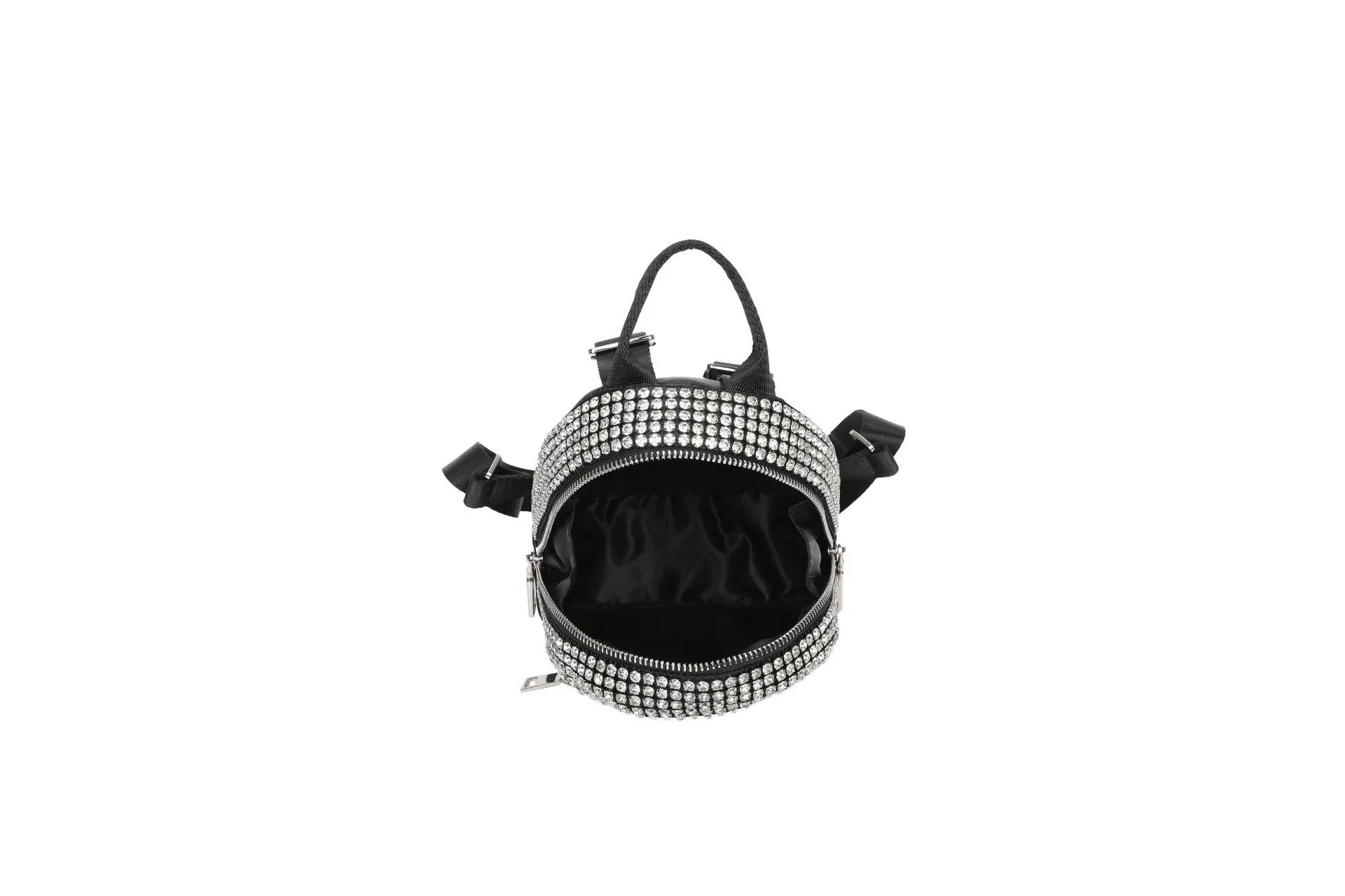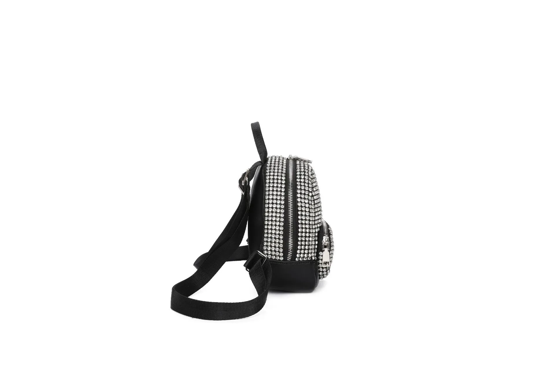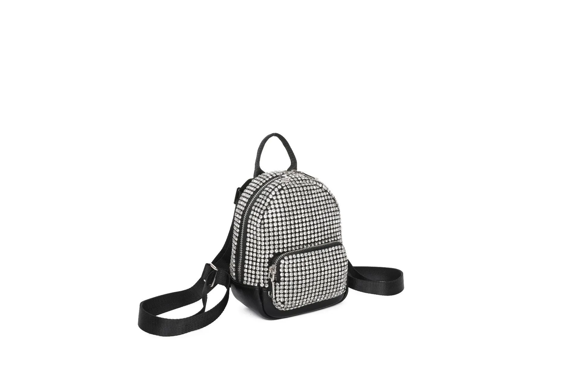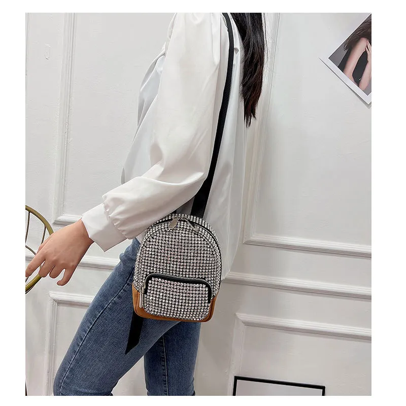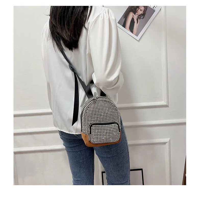 compact design adorned with dazzling rhinestones, this backpack is perfect for women who love to stand out. Its versatile crossbody style