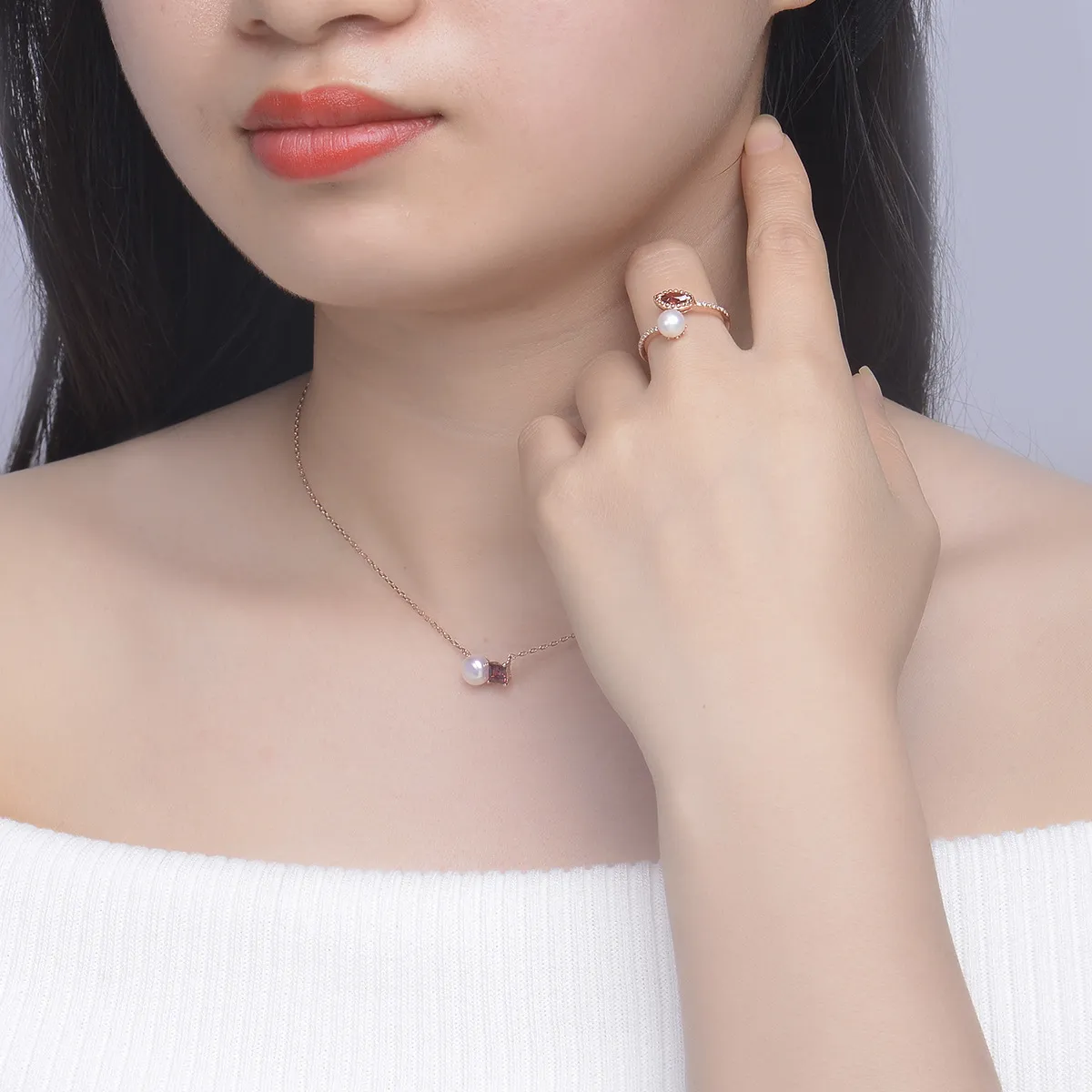 Women's natural pearl garnet rose gold jewelry
