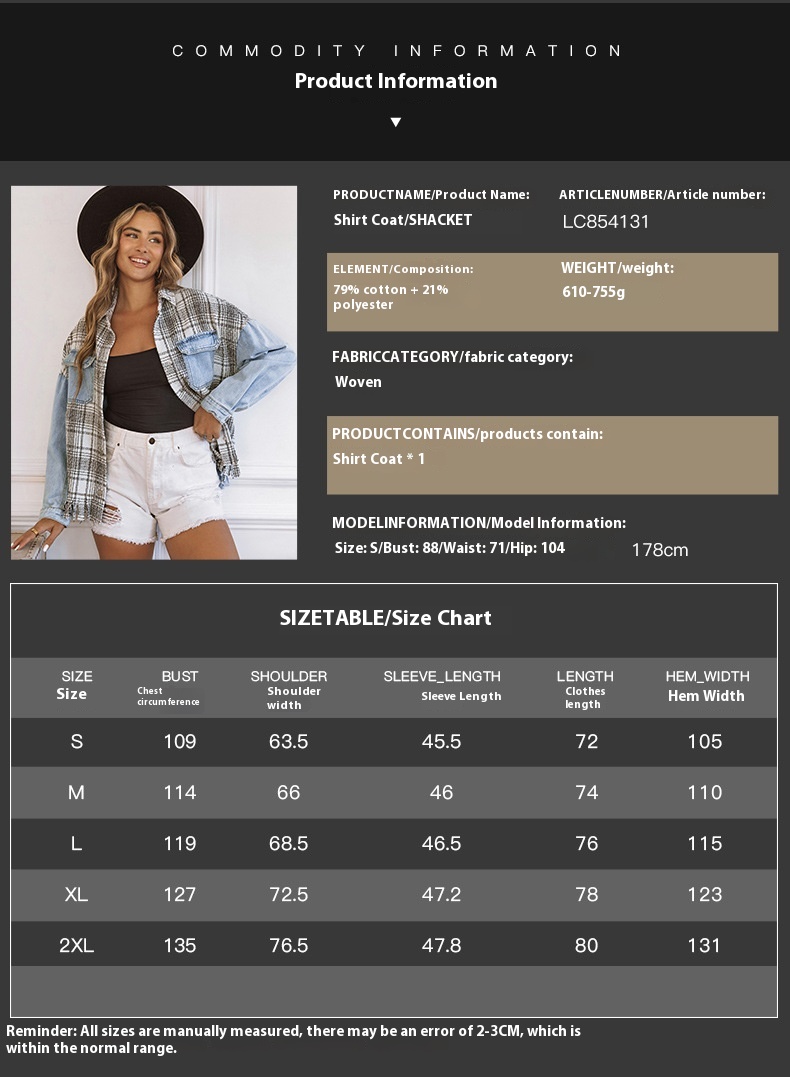 Women's Plaid Patchwork Tassel Flap Pocket Denim Jacket