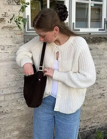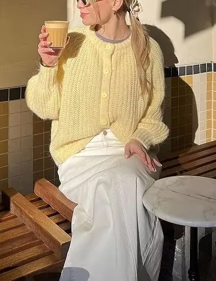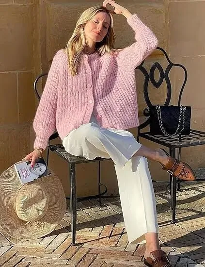 How to Style the Women's Puff Sleeve Knitted Cardigan Sweater