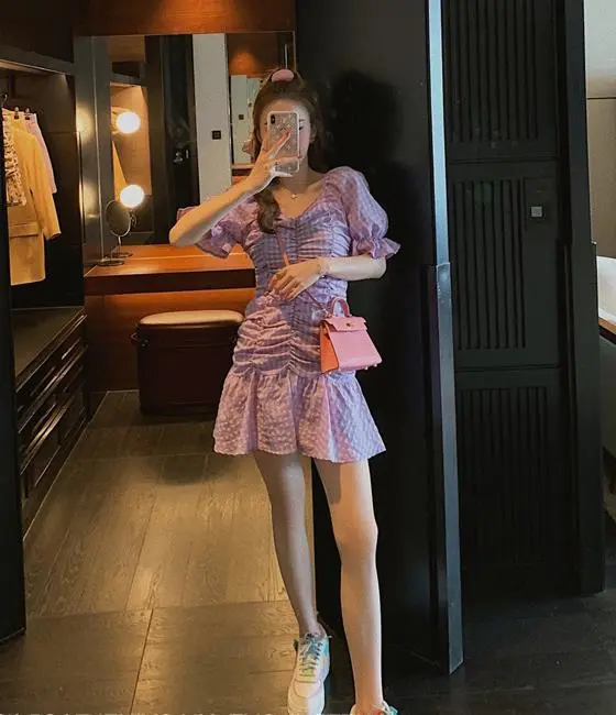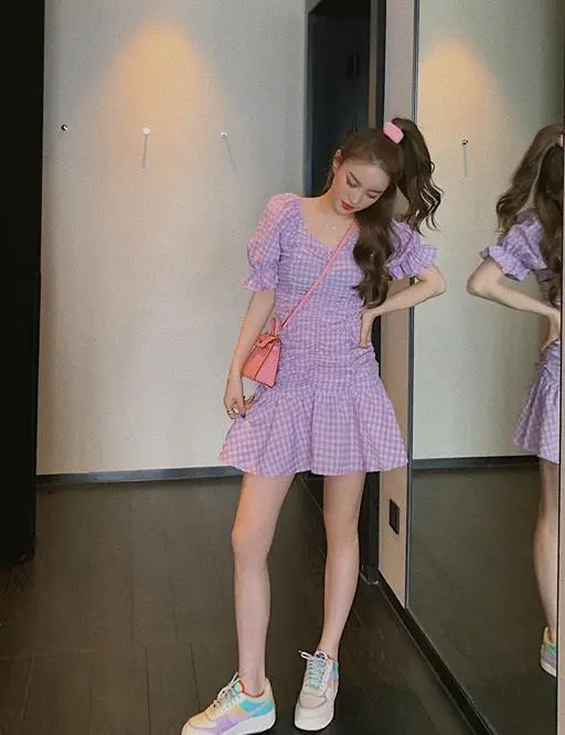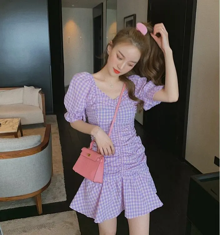 Women's purple check dress